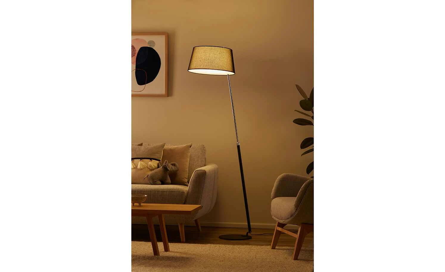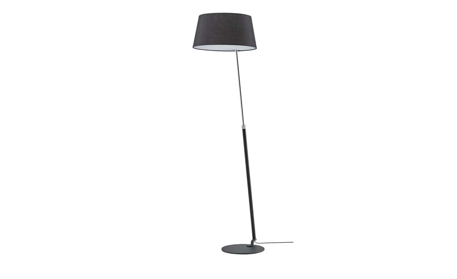 B-Leuchten Stehleuchte, 1-flammig, schwarz/chrom mit grauen Schirm