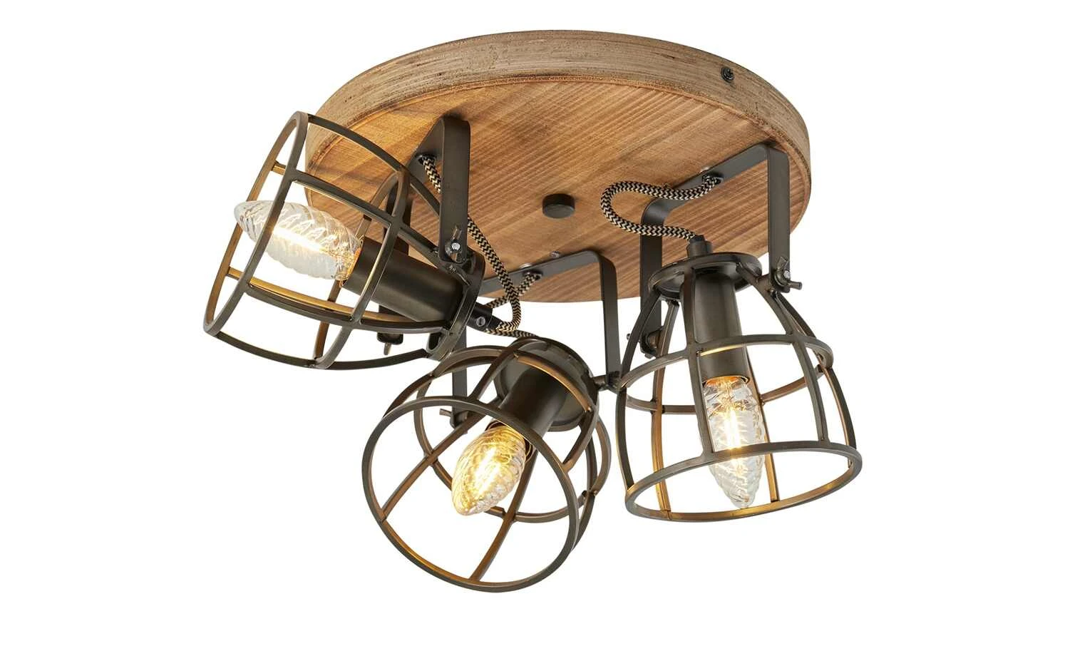 Deckenleuchte, 3-flammig, Holz/Metall