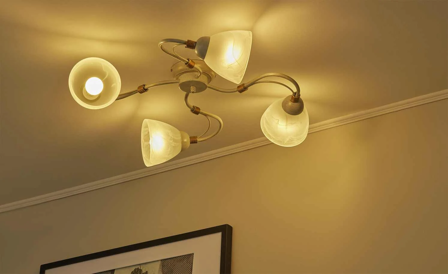 Deckenleuchte, 4-flammig, elfenbein/goldfarben