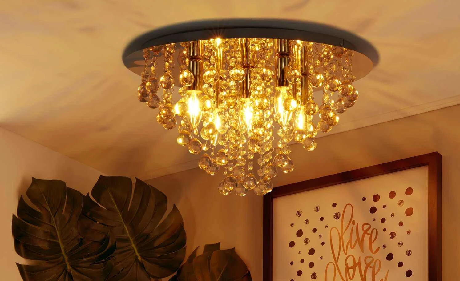 Deckenleuchte, 5-flammig, Beahang goldfarben