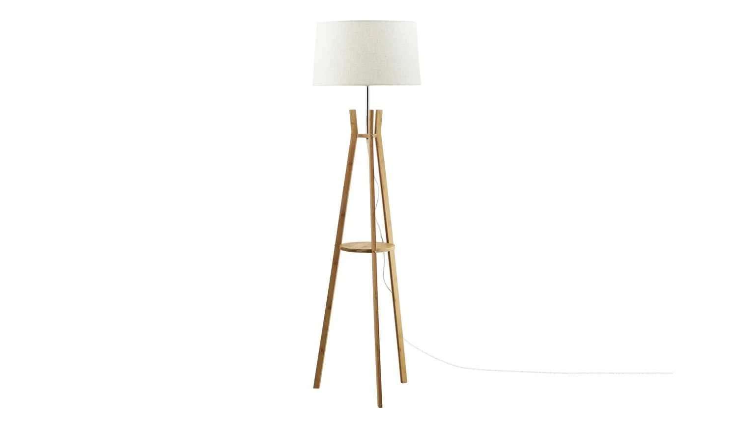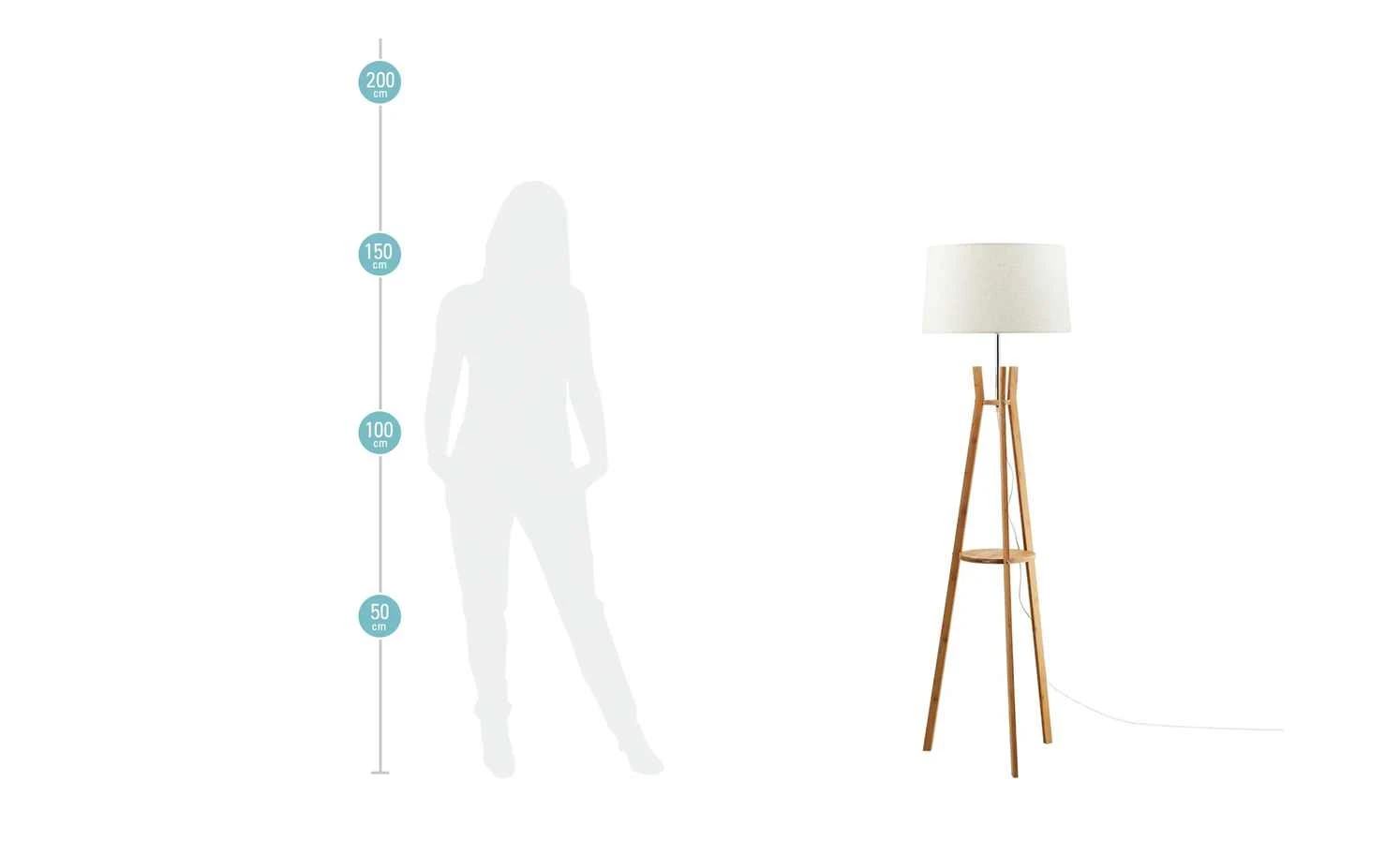HOME STORY Holz-Stehleuchte, mit Stoffschirm und Ablage