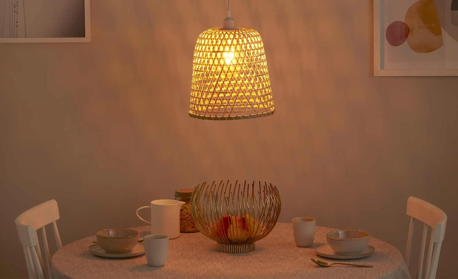 HOME STORY Pendelleuchte, 1-flammig, Bambus-Schirm