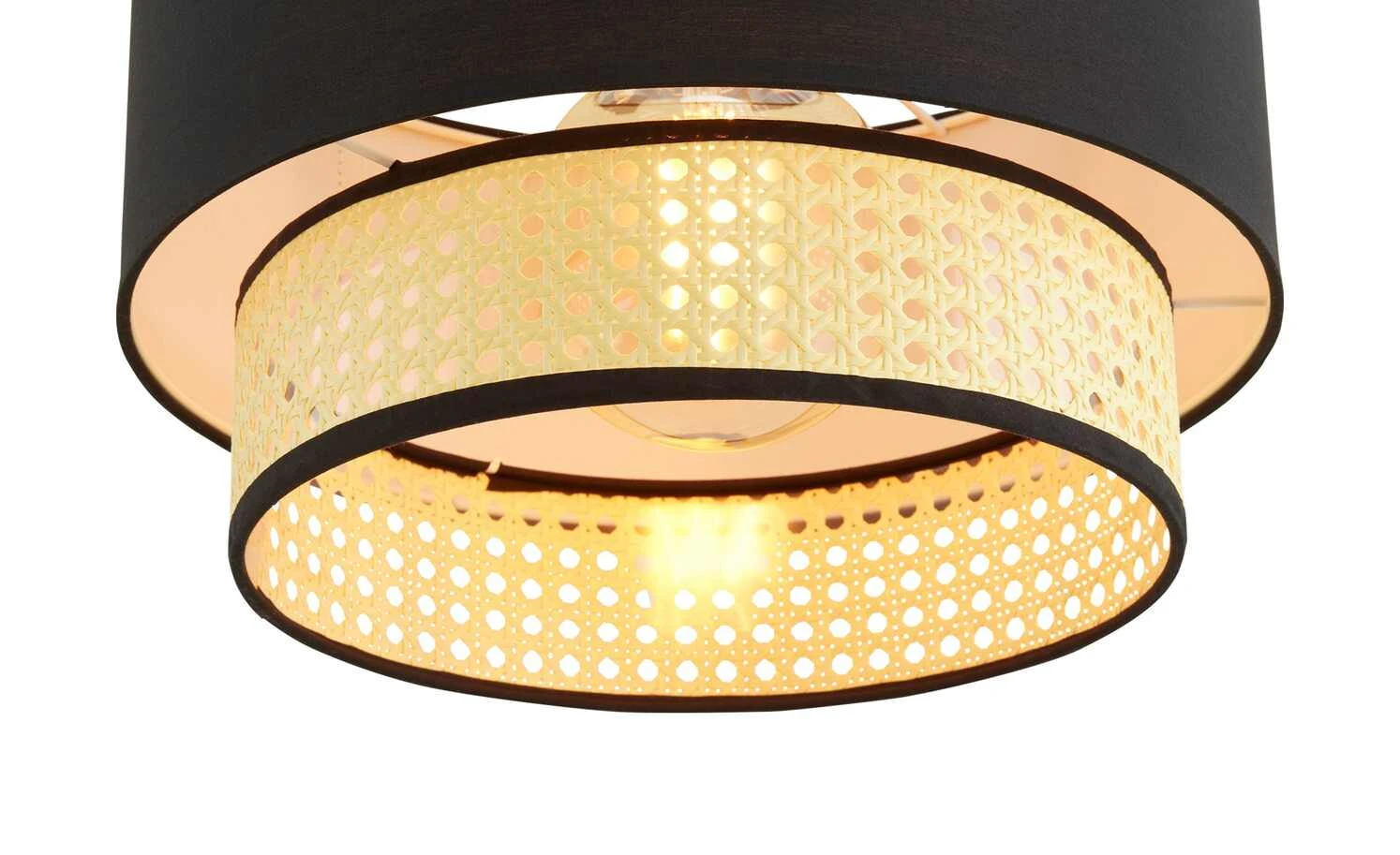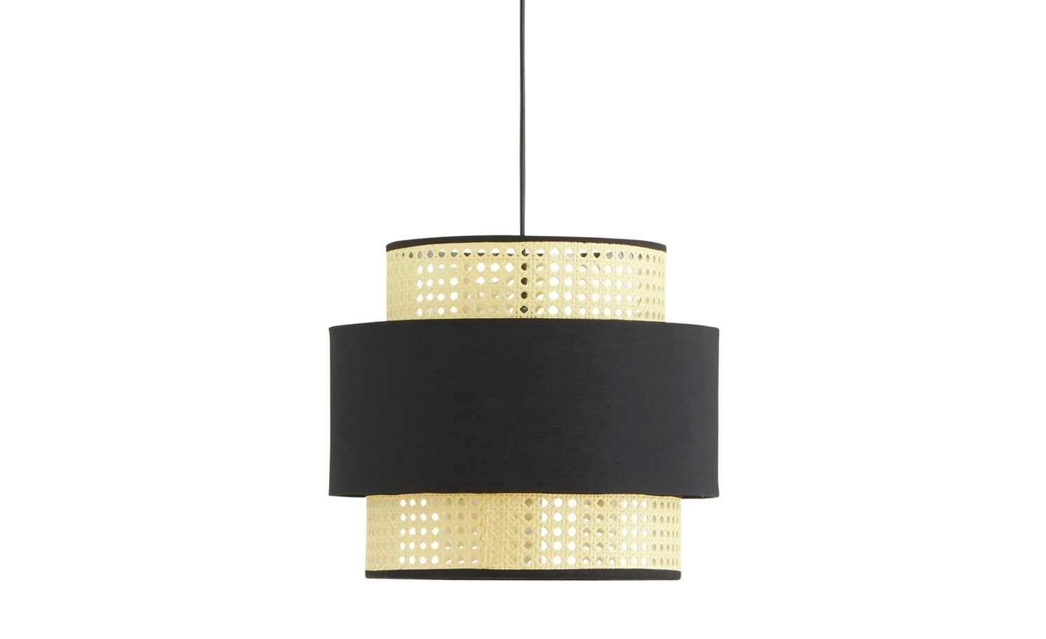HOME STORY Pendelleuchte, 1-flammig, schwarz/ Rattanoptik
