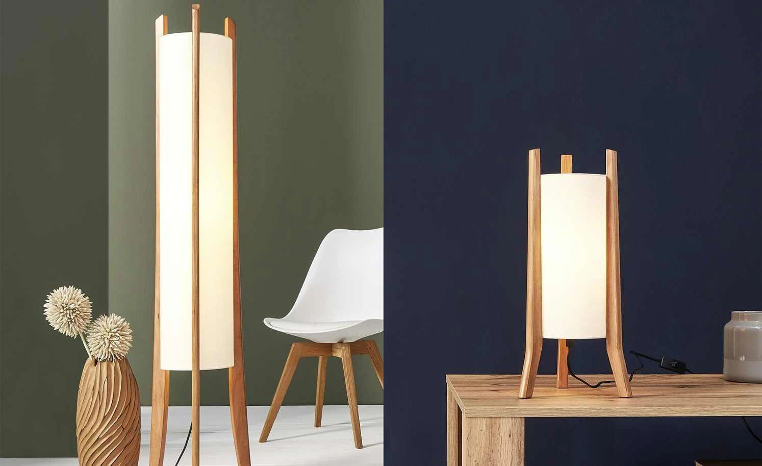 HOME STORY Stehleuchte mit Holzfüssen, 1-flammig