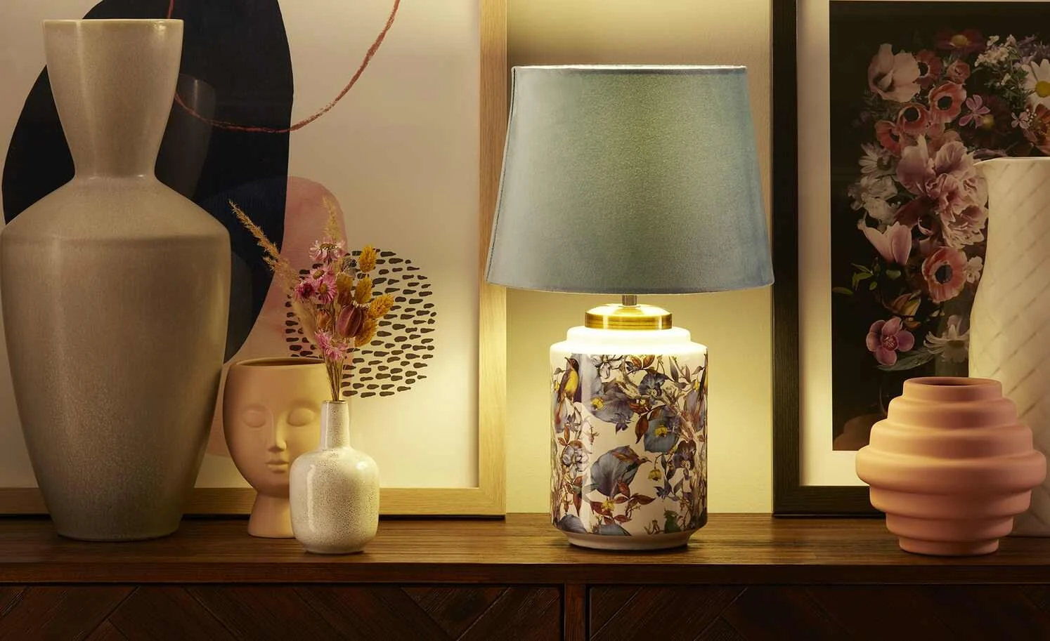 KHG Keramik-Tischleuchte, 1-flammig, blau ´Vögel´