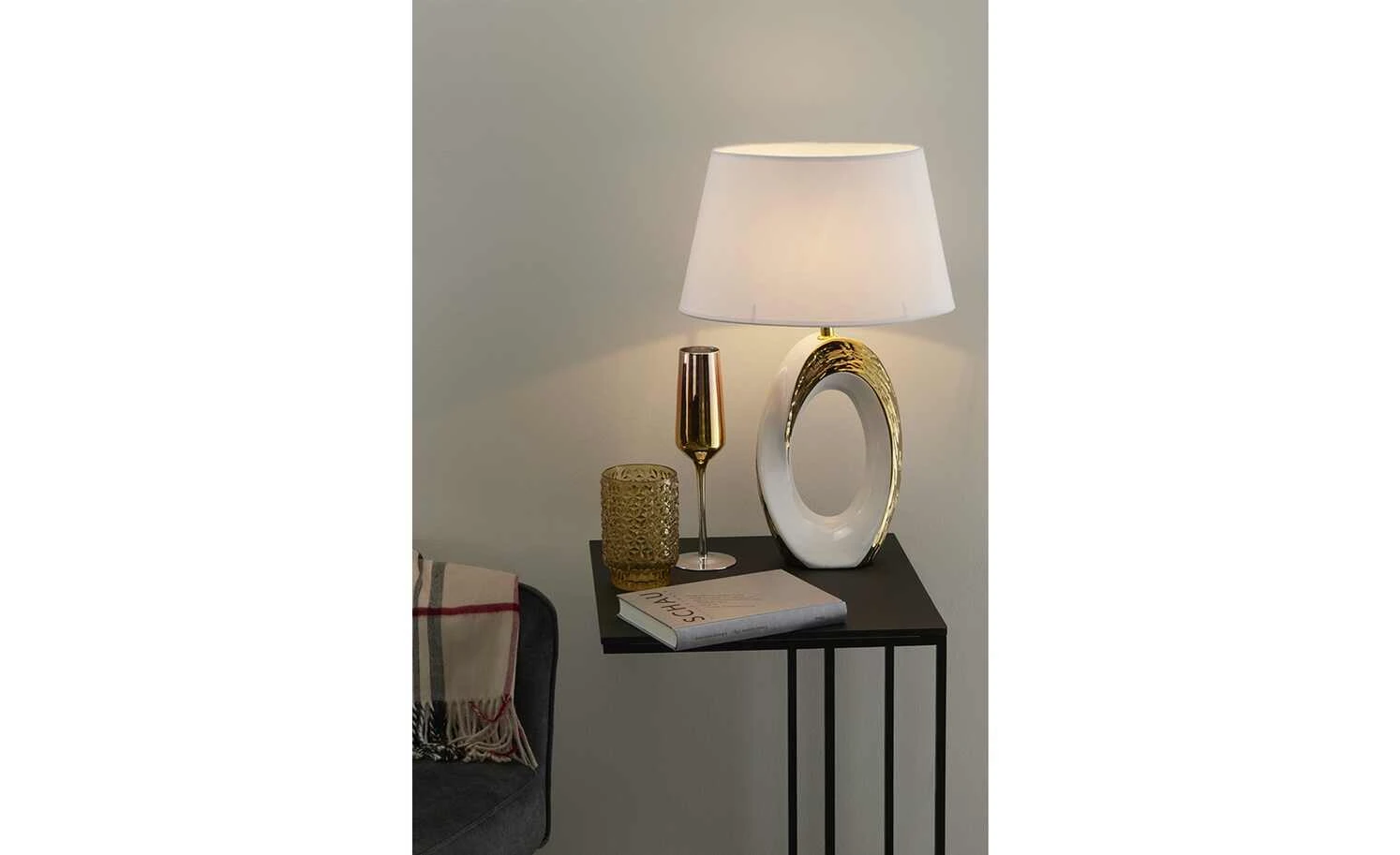 KHG Keramik-Tischleuchte, 1-flammig, goldfarben/weiß