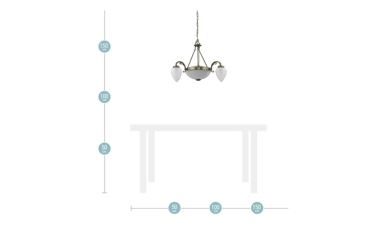 Dieser voluminös gestaltete Kronleuchter ist ein echter Blickfang für Ihren Wohnraum. Der Kronleuchter ist aus Messing hergestellt und überzeugt durch seine einfallsreiche Gestaltung. Über vier Streben ist der rundlich gestaltete Korpus mit dem Sockel verbunden, die fünf Flammen sorgen für angenehme Lichtakzente. Das für die Lampengläser verwendete weiße Glas harmoniert hervorragend mit dem Messing des Korpus und sorgt so für ein stimmiges, attraktives Gesamtbild.