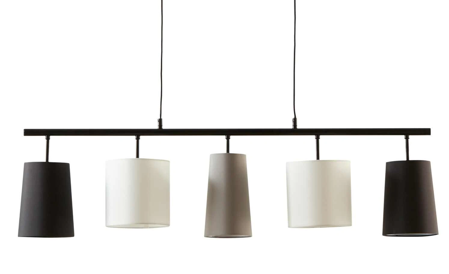 KHG Pendelleuchte, 5-flammig, schwarz, verschiedene Stoffschirme