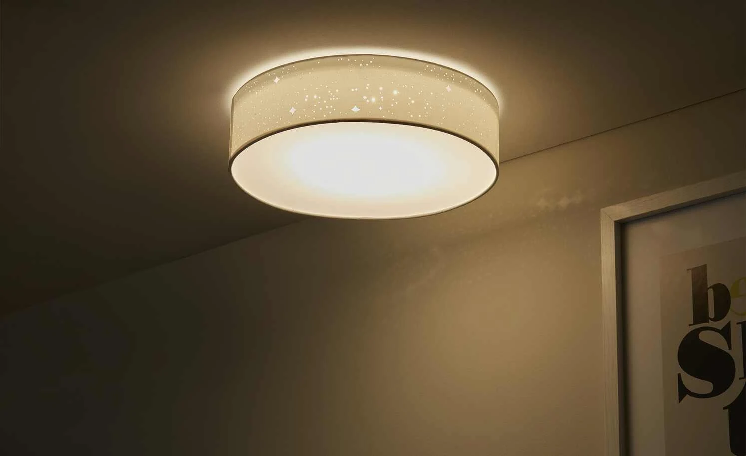 KHG Smart-Home Deckenleuchte, Stoffschirm weiß mit Stanzung