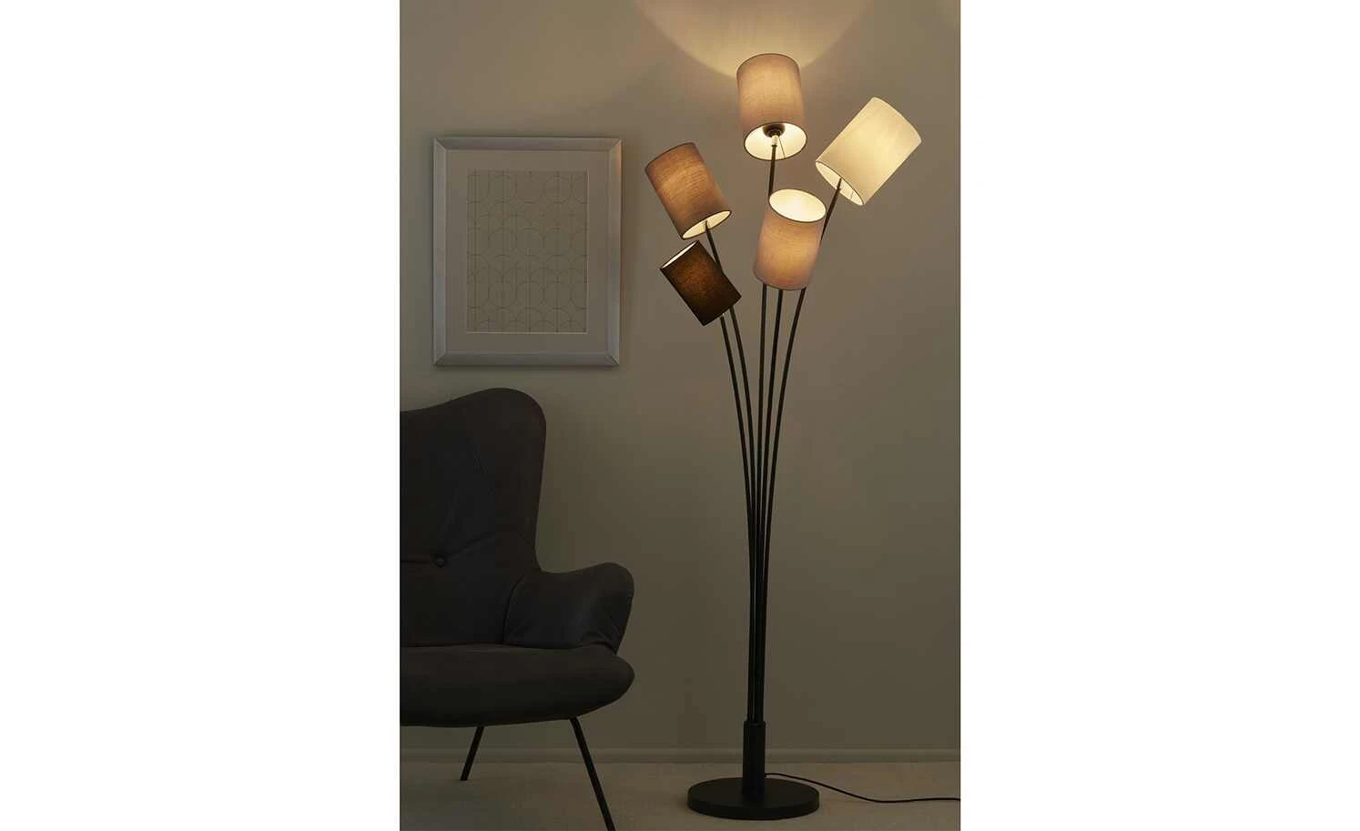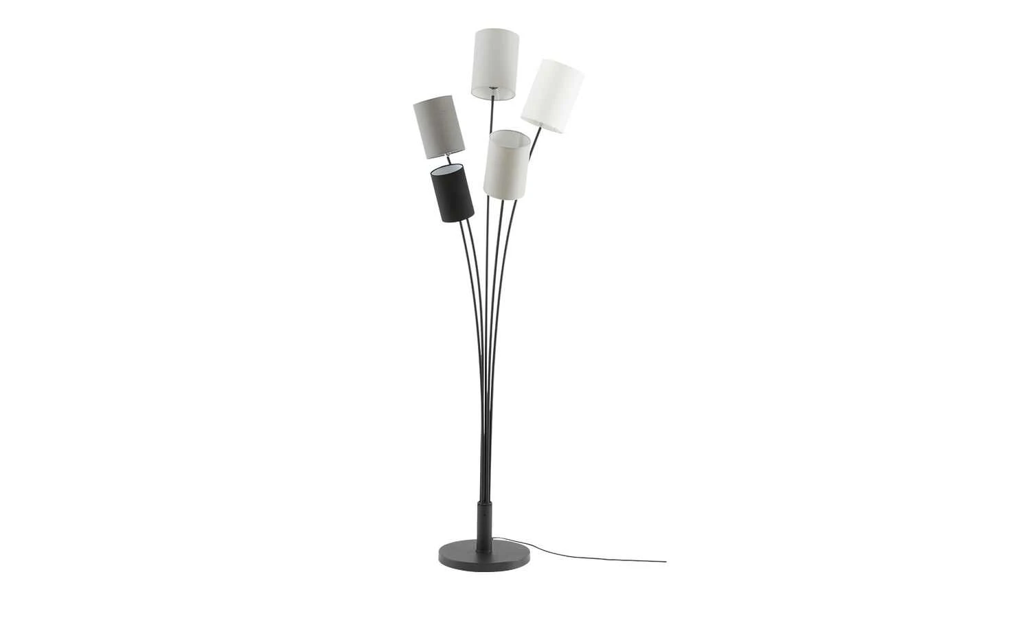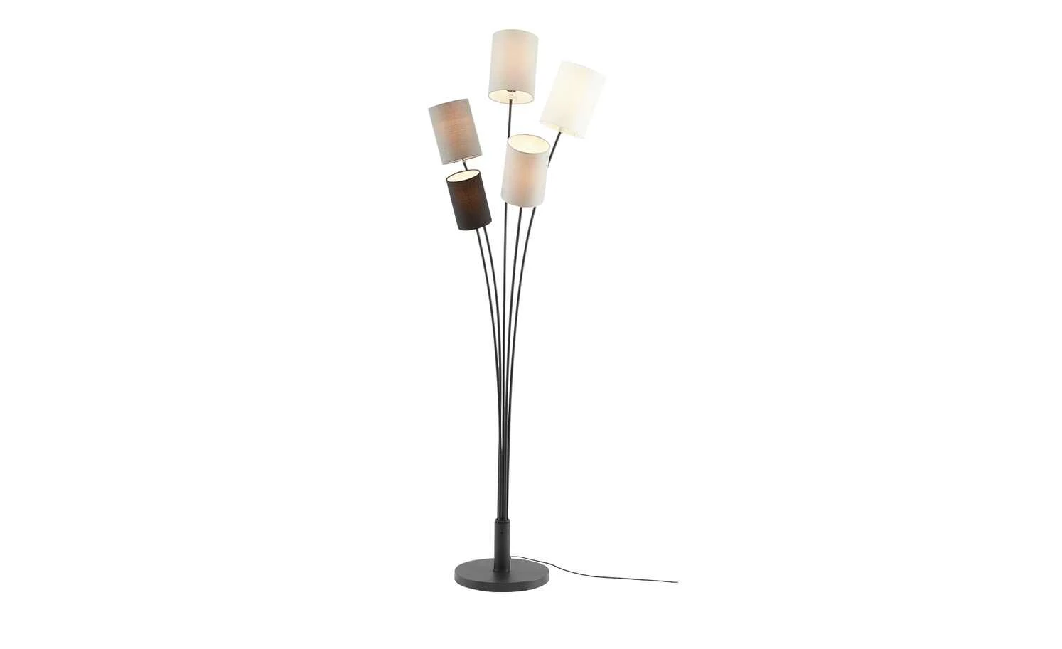 KHG Stehleuchte, 5-flammig, schwarz mit Stoffschirmen
