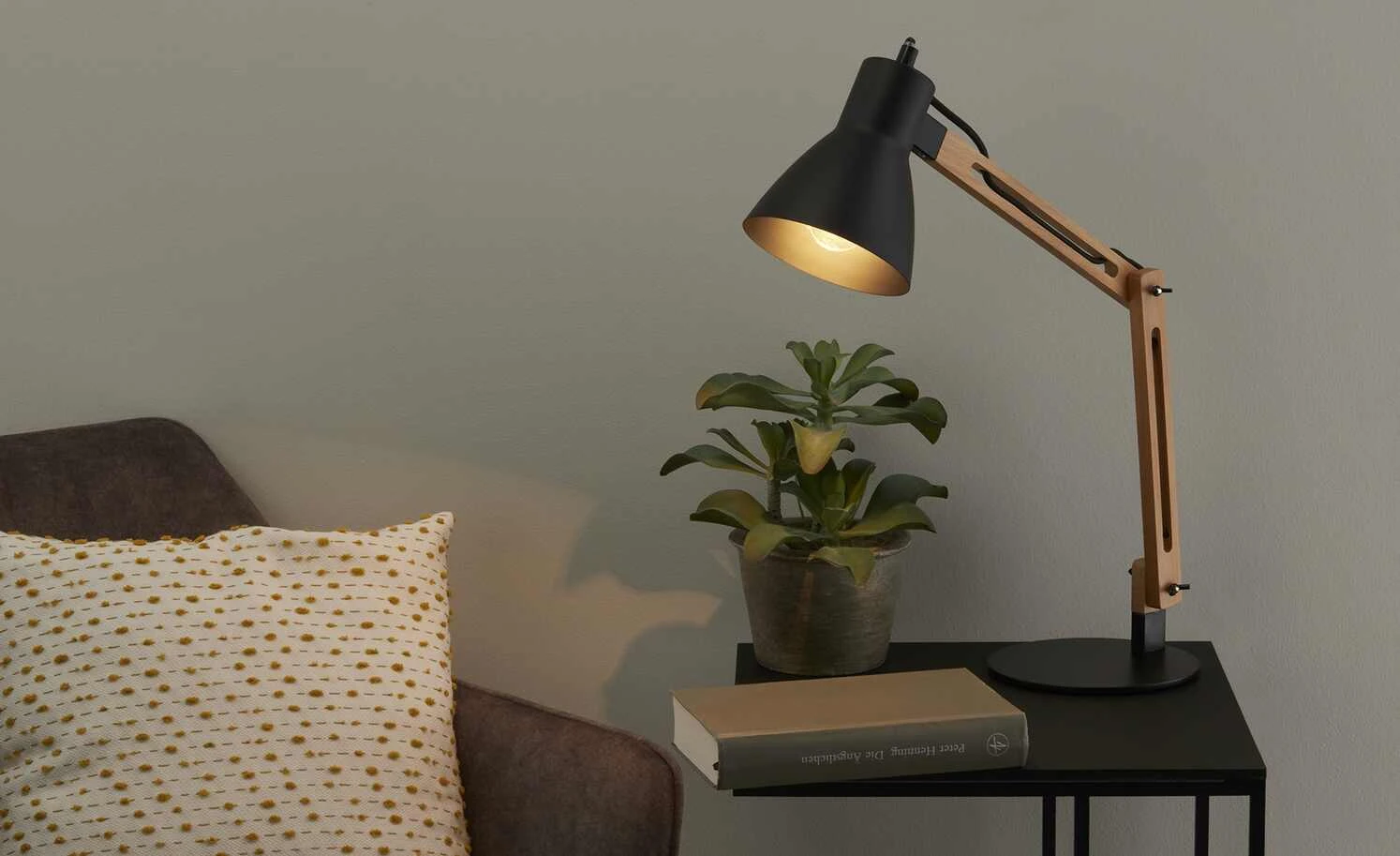 KHG Tischleuchte, 1-flammig, Buche/Schwarz