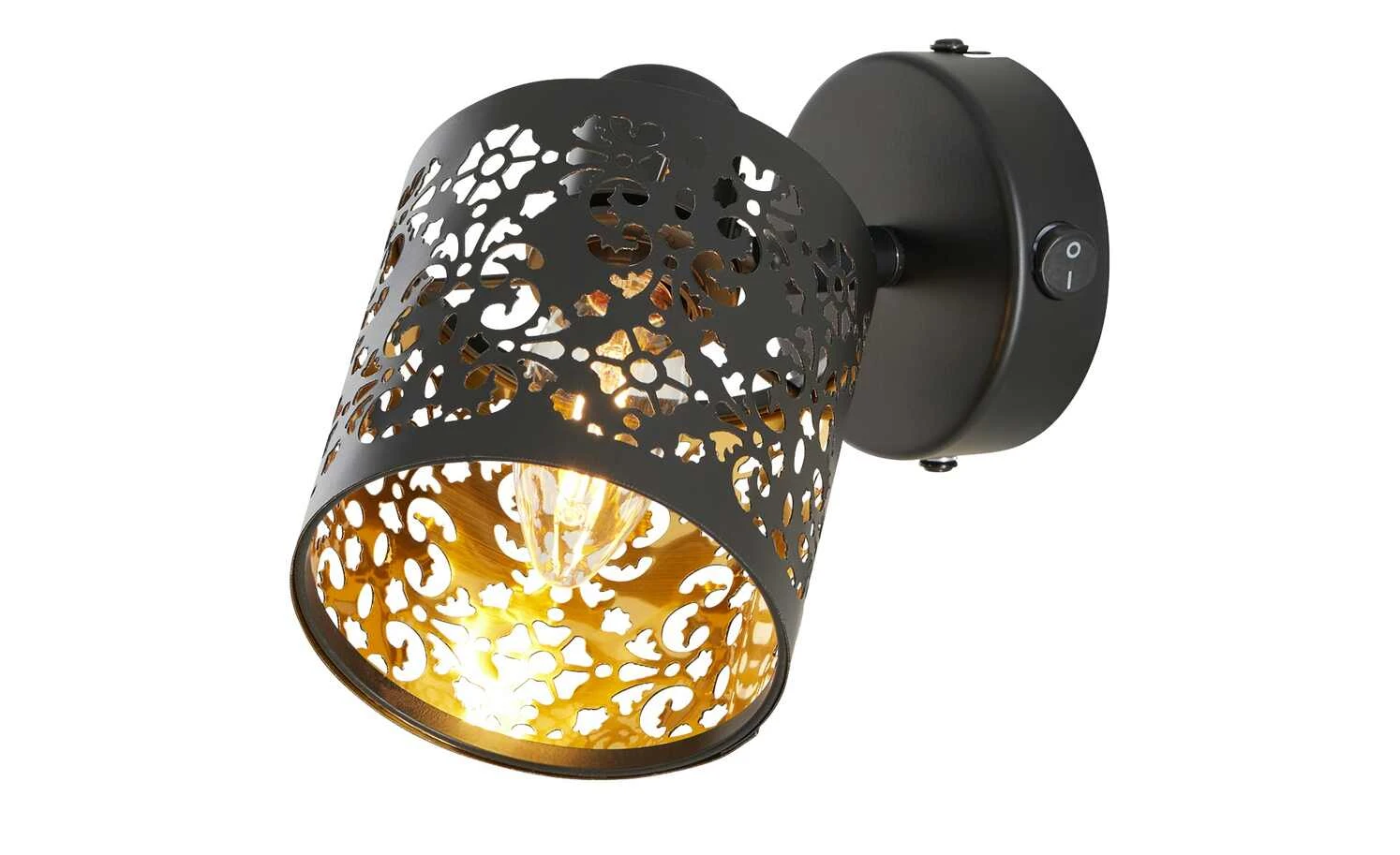 KHG Wandstrahler, 1-flammig, schwarz/gold mit Stanzung