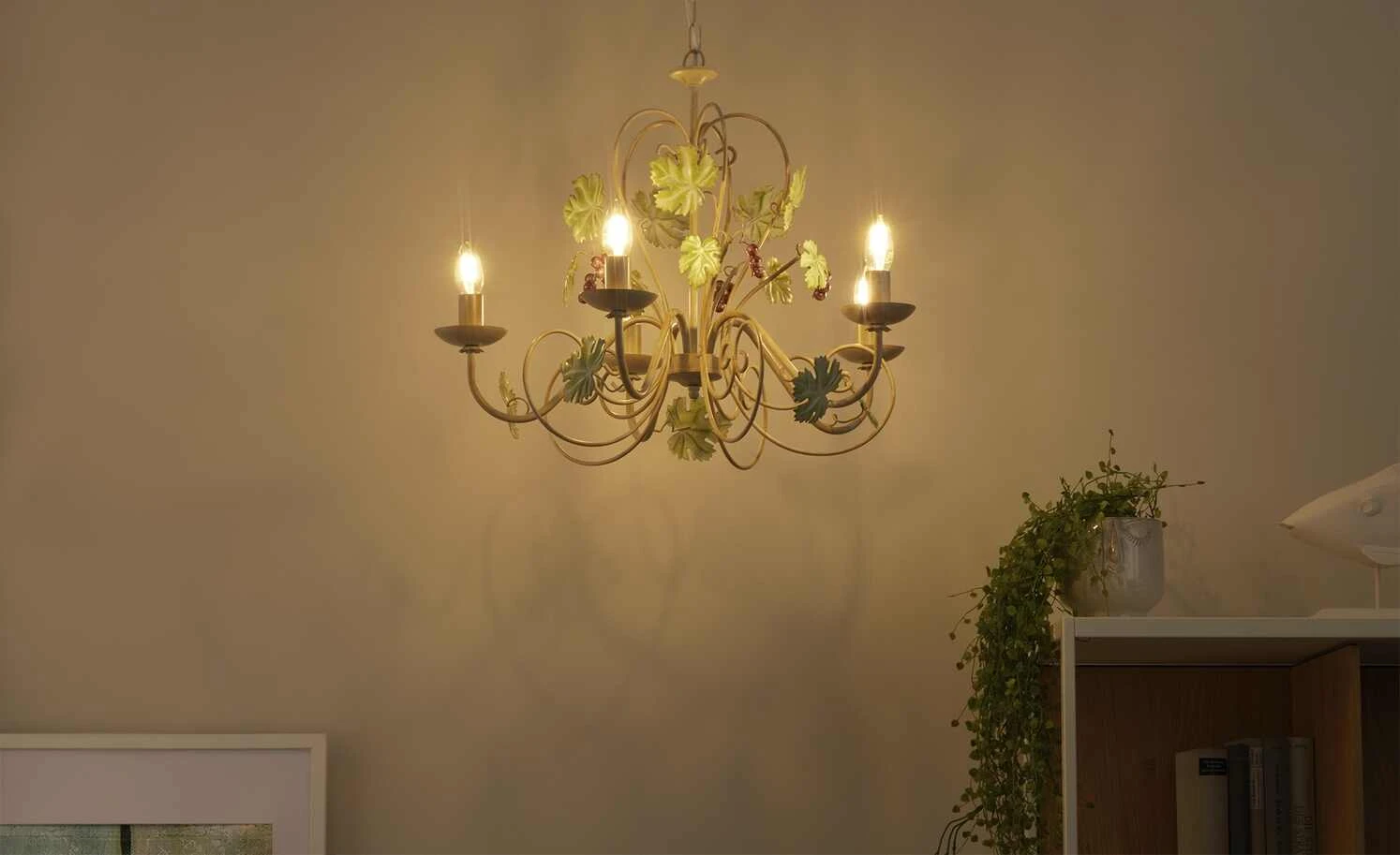 Kronleuchter, 5-flammig, elfenbeinfarben
