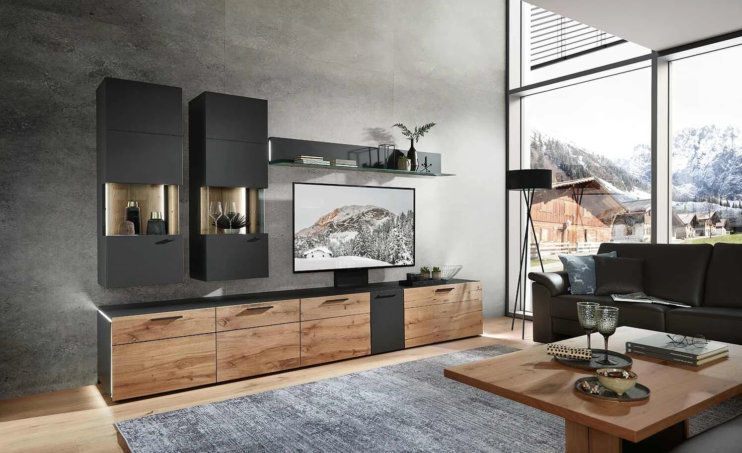 - Lieferumfang / mitgeliefertes Zubehör: 2x LED-Korpusseitenbeleuchtung 7,2 Watt für TV-Unterteile, 2x LED-Rückwandbeleuchtung 4,0 Watt für Hängeelemente, Trafo-Set für max. 30 Watt und Fernsteuerungs-Set, LED-Wandbordbeleuchtung 1,8 Watt