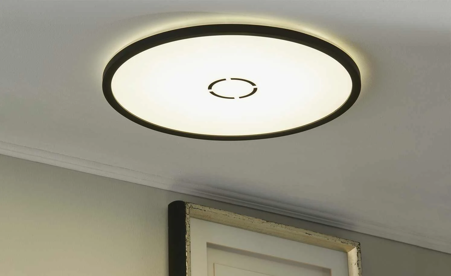 LED-Deckenleuchte, schwarz mit Hintergrundbeleuchtung