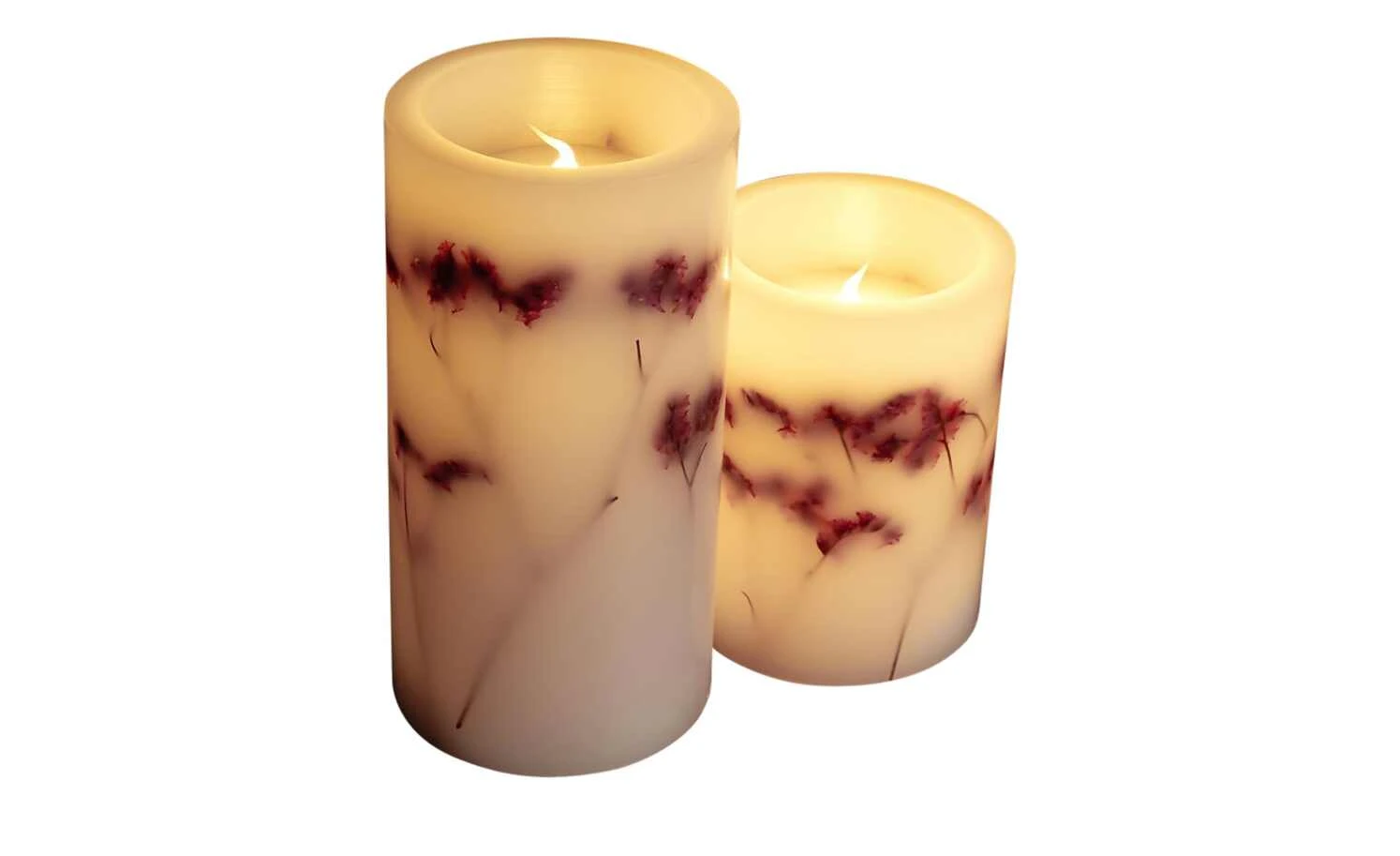 LED-Echtwachs-Kerzen 2er-Set, weiß mit Blumen