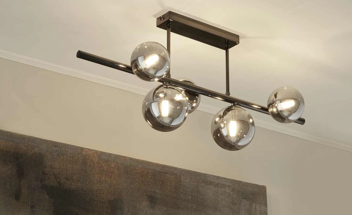 Meisterleuchten Deckenleuchte, 5-flg. schwarzchrom/Rauchglas