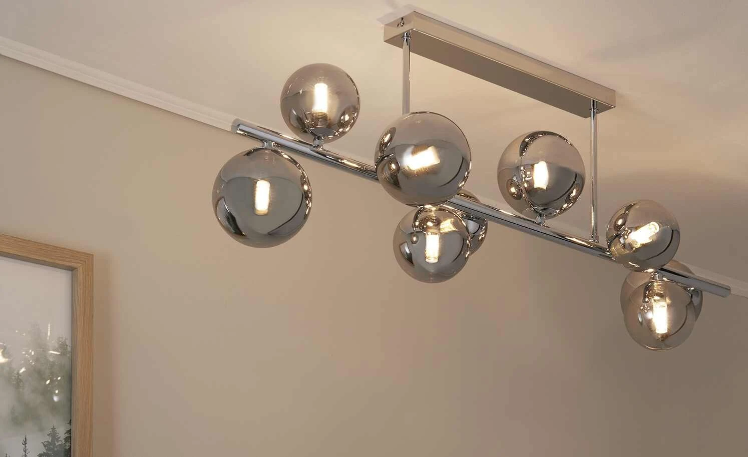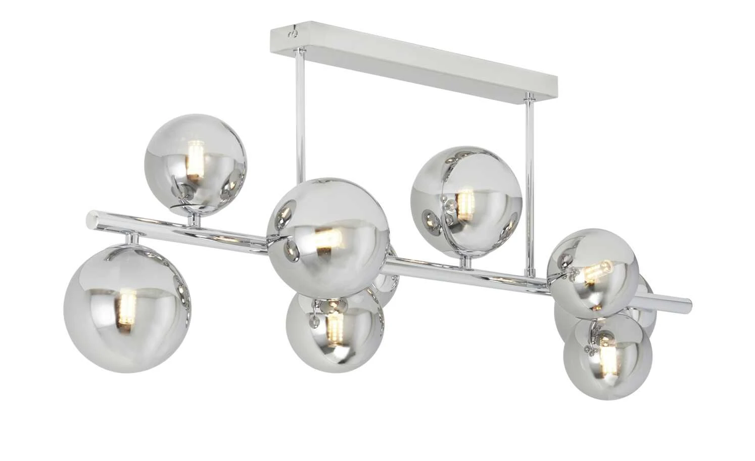 Meisterleuchten Deckenleuchte, 9-flammig, chrom, Rauchglas-Kugeln