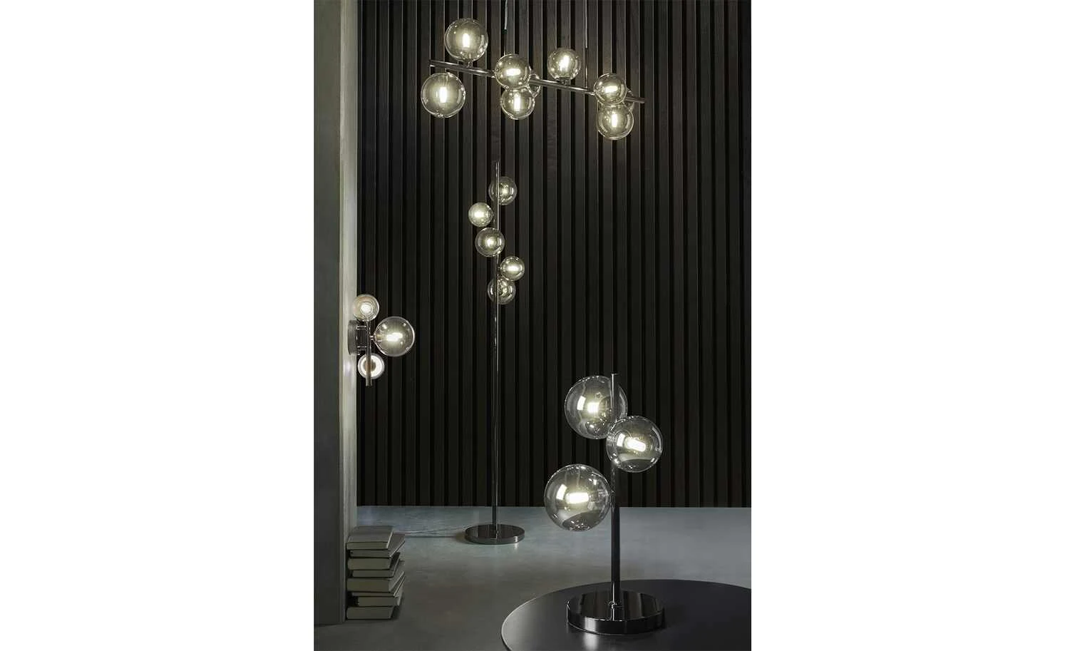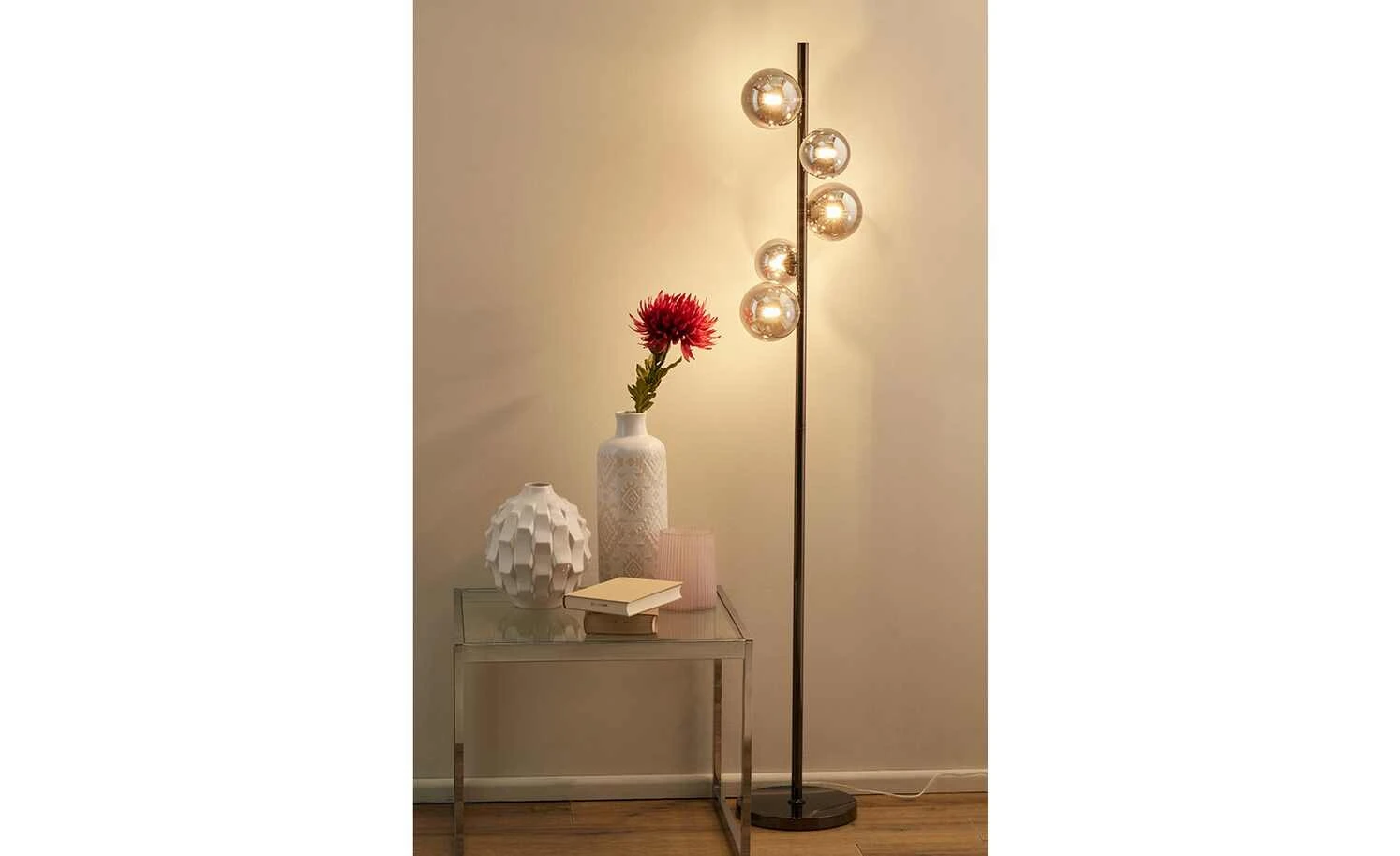 Meisterleuchten Stehleuchte, 5-flammig, schwarzchrom,Rauchglas