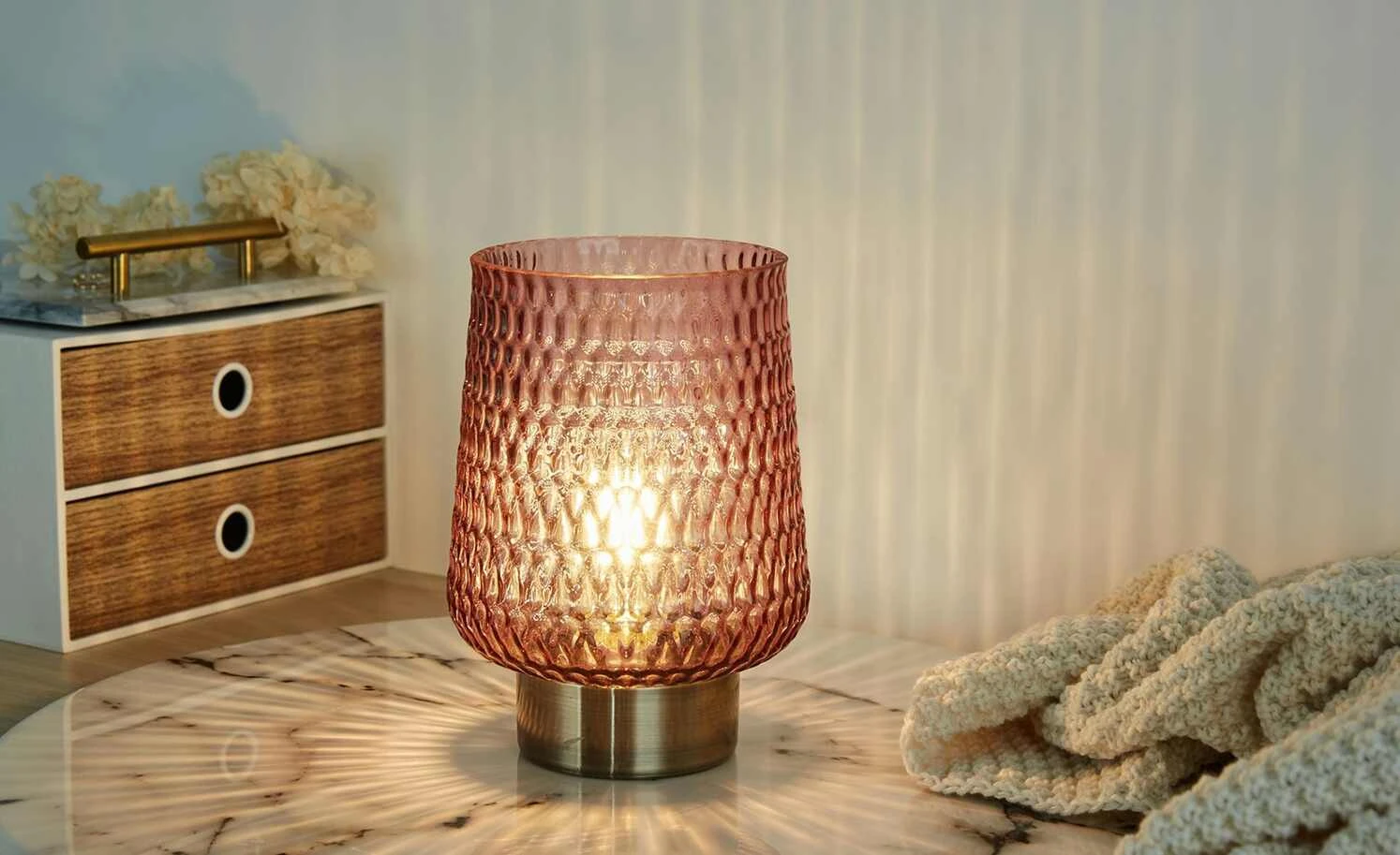 Mobile-Tischleuchte, Glas rosa, groß