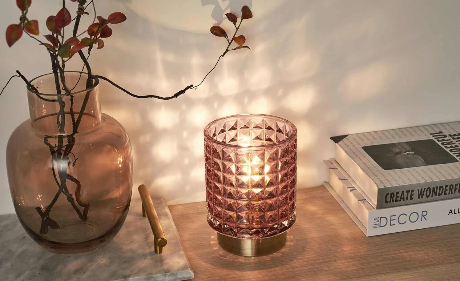 Mobile-Tischleuchte, Glas Rosa