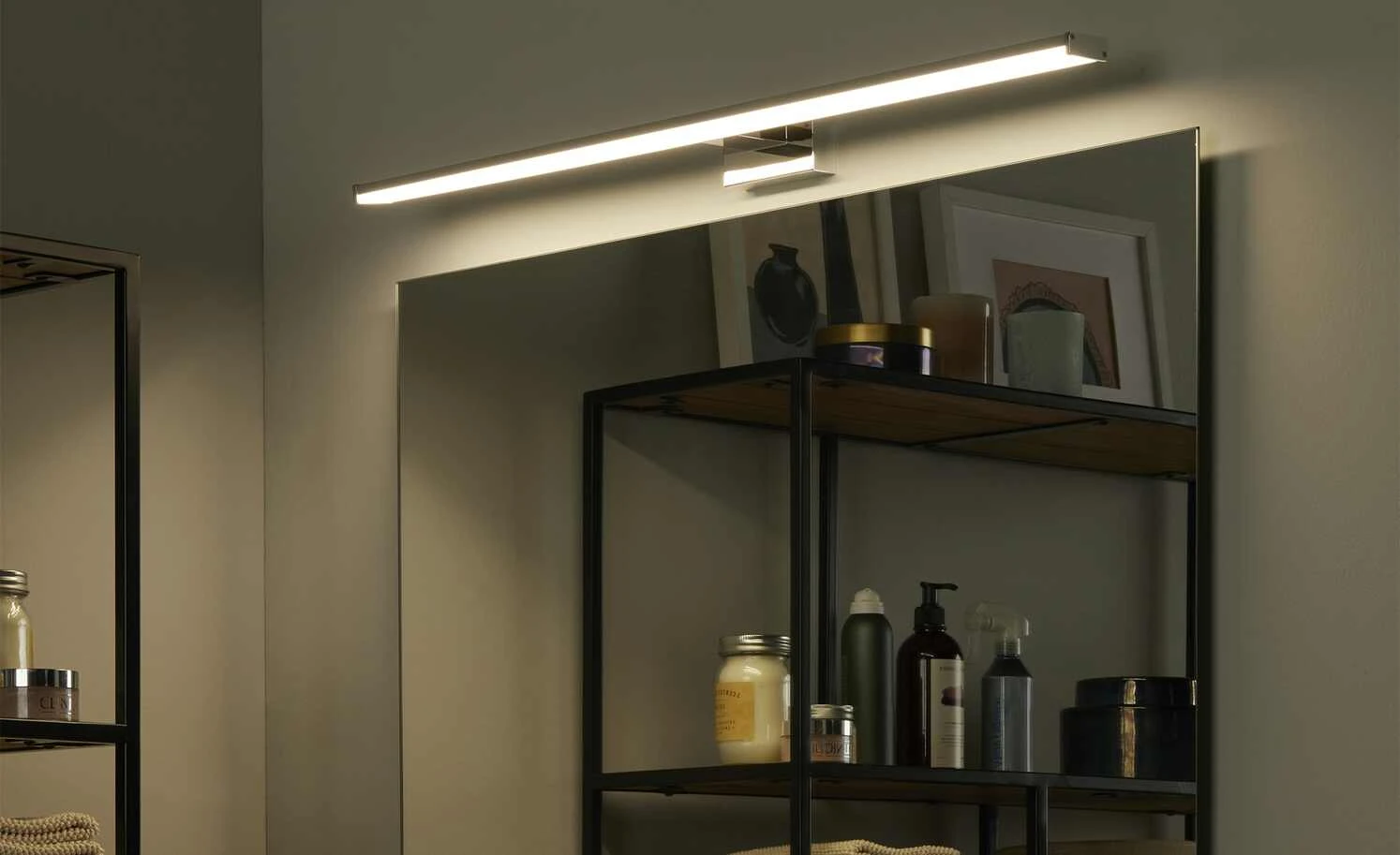 Diese schmale LED-Bad-Wandleuchte bringt Ihr Spiegelbild zum Strahlen. Die Spiegellampe können Sie nach Belieben über einen vorhandenen Spiegel montieren. Die Lampe ist mit einem LED-Leuchtmittel versehen, welches durch die weiße Abdeckung dafür sorgt, dass Sie nicht geblendet werden. Das Leuchtmittel strahlt in einem weißen Licht bei 4000 Kelvin. Dank der verwendeten LED-Technik zeichnet sich die Leuchte als energiesparend aus und überzeugt dabei mit einer geringen Wärmeentwicklung sowie hohen Lebensdauer. Die Leuchte eignet sich auch hervorragend als Schminkleuchte.