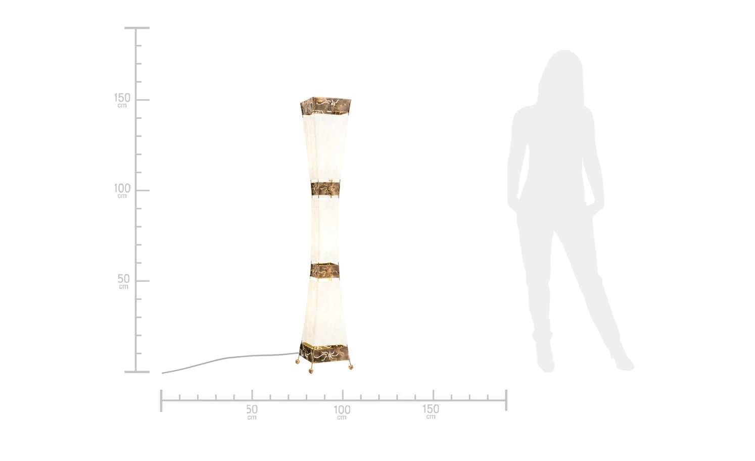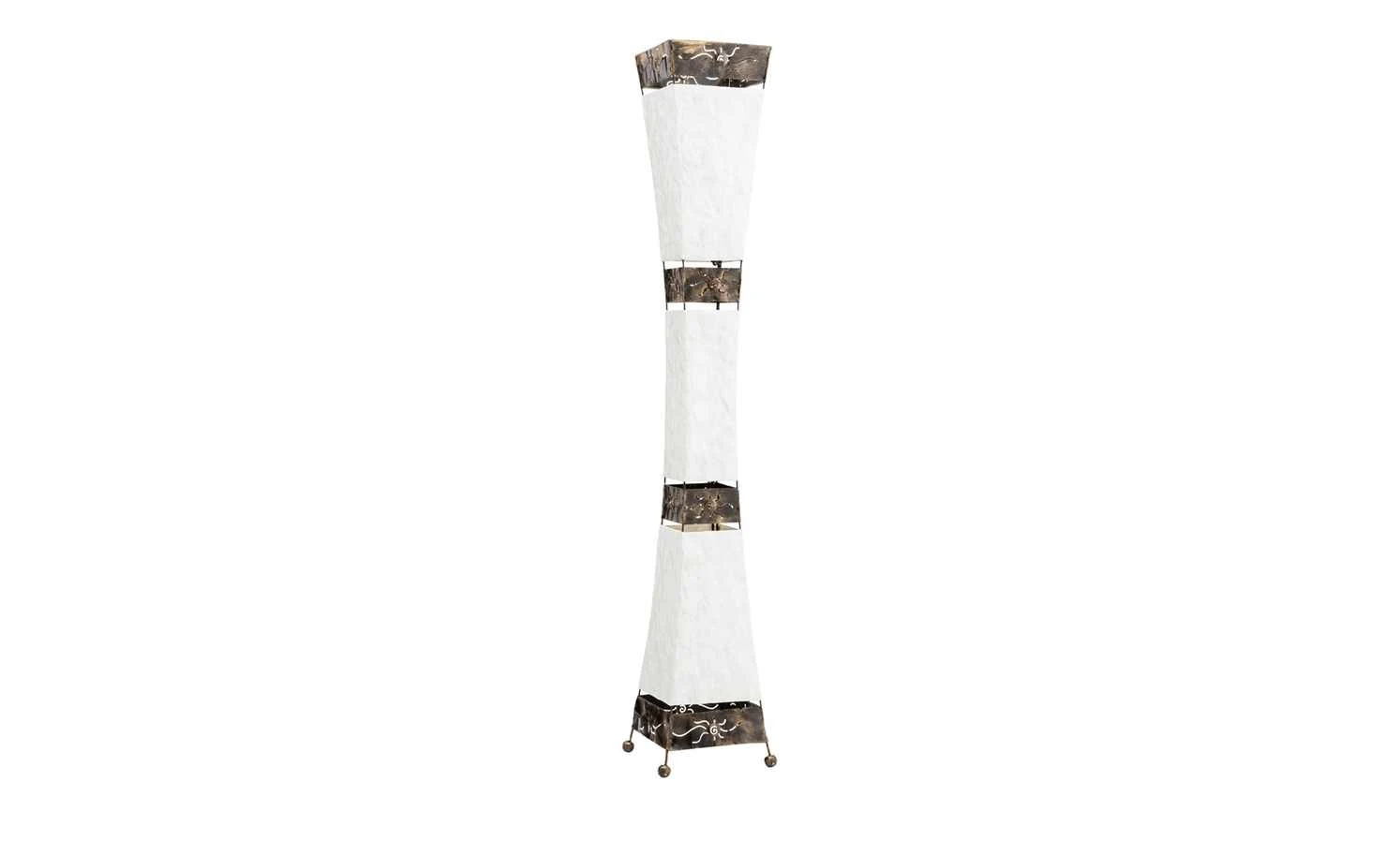 Diese hochwertige und stilvolle Stehlampe begeistert durch ihr Design ebenso wie ihre Funktionalität. Aus geschwungenem Perlmutt und verziertem Metall gestaltet wird sie zum attraktiven Blickfang in allen Räumlichkeiten. Sie wird über einen Schnurschalter bedient und eignet sich auch für Energiesparleuchtmittel.