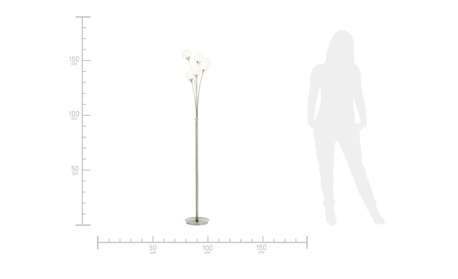 Elegant und zeitlos präsentiert sich diese 6- flammige Stehleuchte. Die Kugeln aus Aluminium passen optisch perfekt zum Gestell aus Stahl und vervollständigen das dekorative Bild des hochwertigen Accessoires. Alle benötigten Leuchtmittel sind bereits im Lieferumfang enthalten.