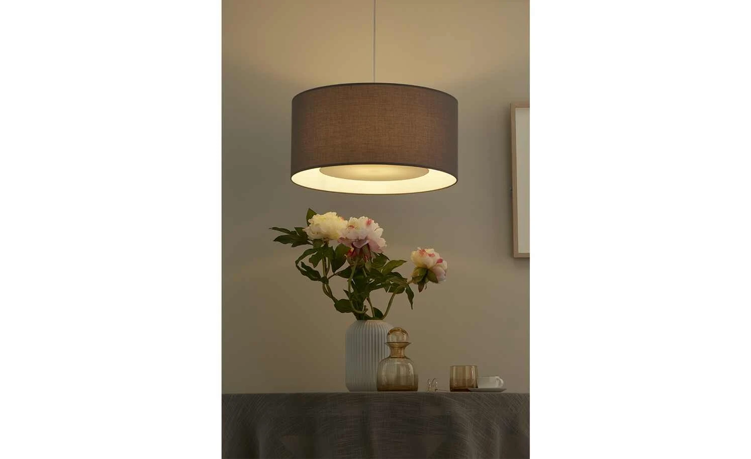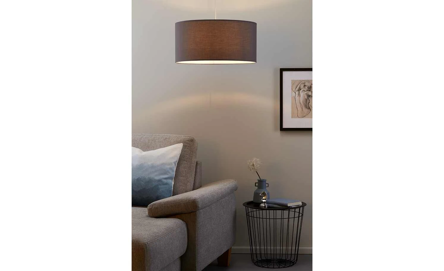 Pendelleuchte, 1-flammig, Stoff grau