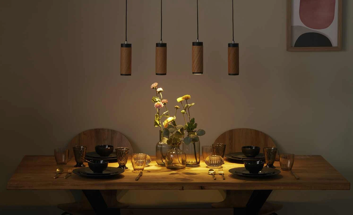 Pendelleuchte, 4-flammig, Eiche/schwarz