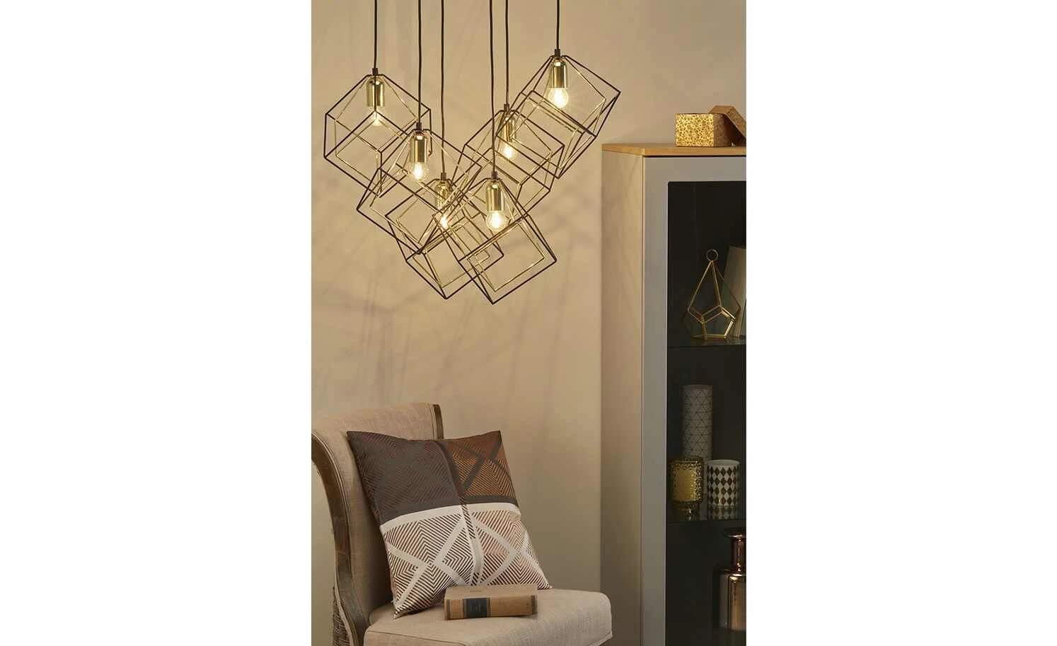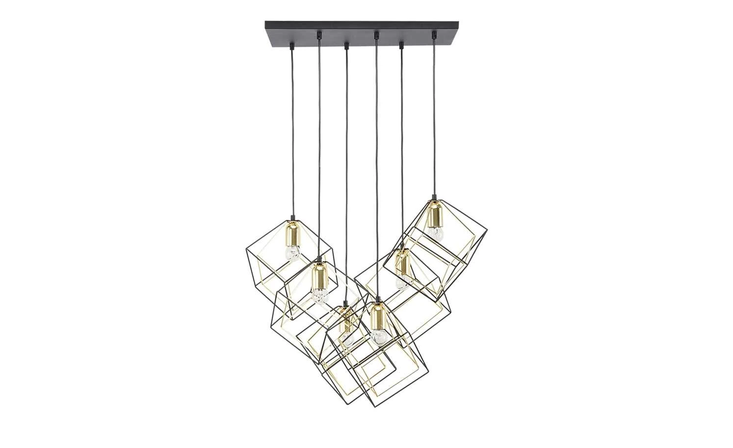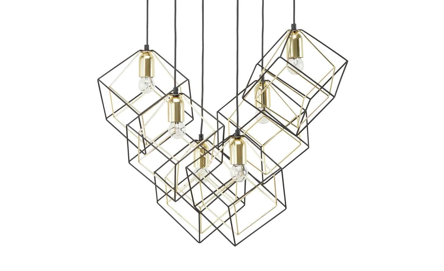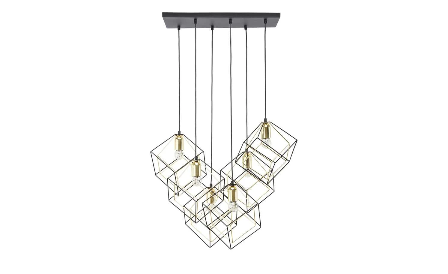 Pendelleuchte, 6-flammig, schwarz/messing Kubus