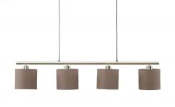 KHG Pendelleuchte, 4-flammig, Nickel matt, Stoffschirme grau