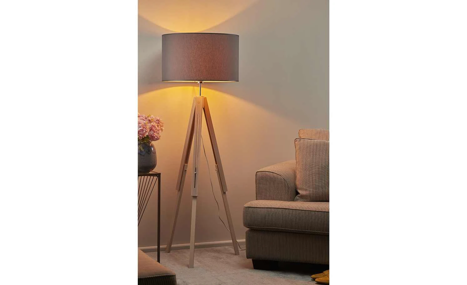 Stehleuchte, 1-flammig, Stoffschirm grau
