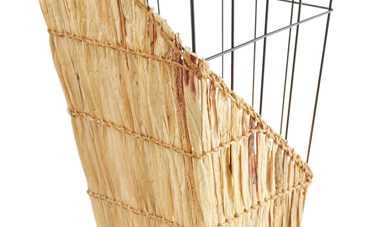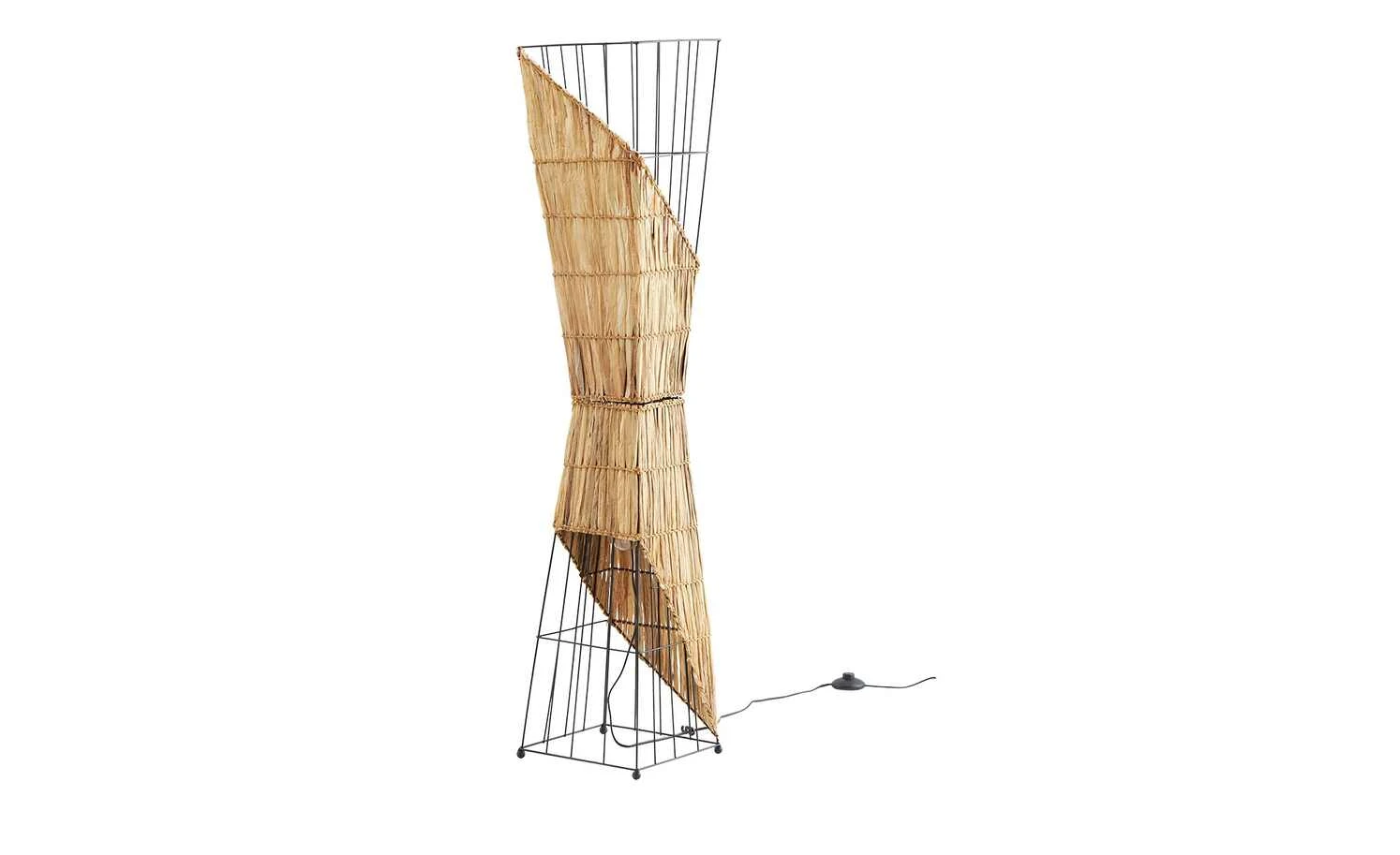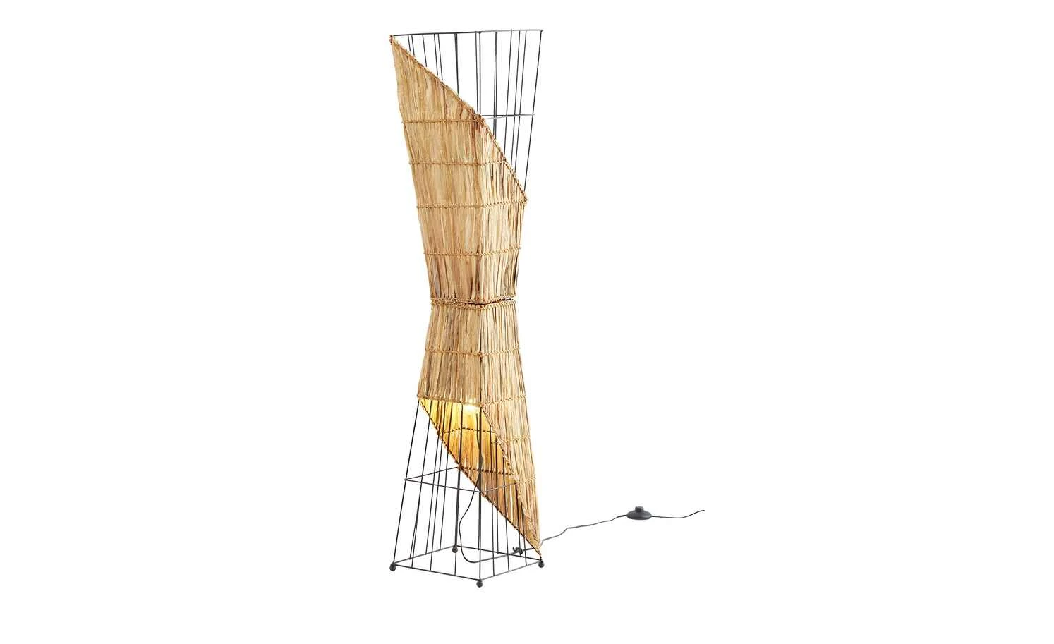 Stehleuchte, 2-flammig, Metall mit Grasgeflecht