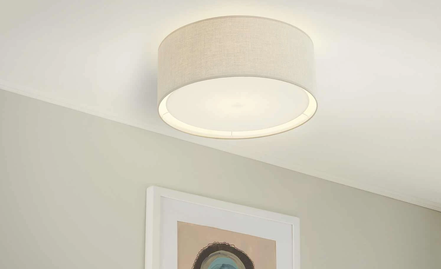 Stoffdeckenleuchte, 1-flammig, Leinen-Natur