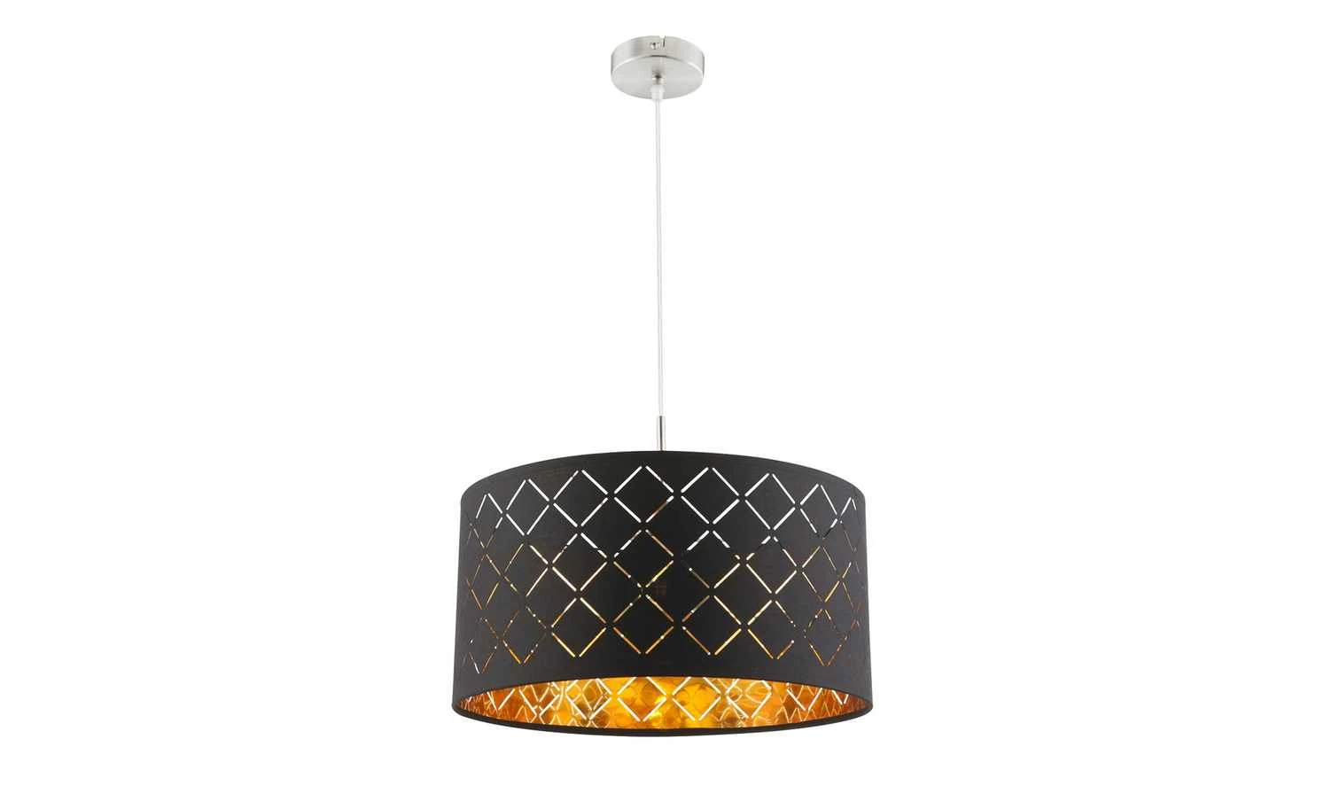 Stoffpendelleuchte, 1-flammig, Schirm schwarz/goldfarben