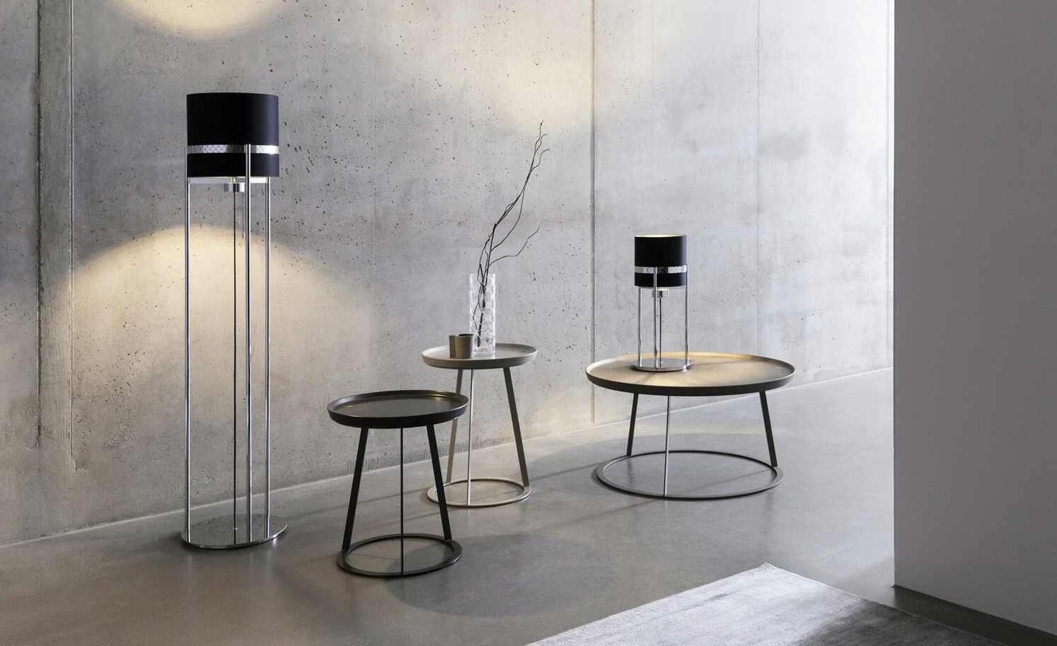 Tischleuchte 1-flammig Textil Round Lights Chrome