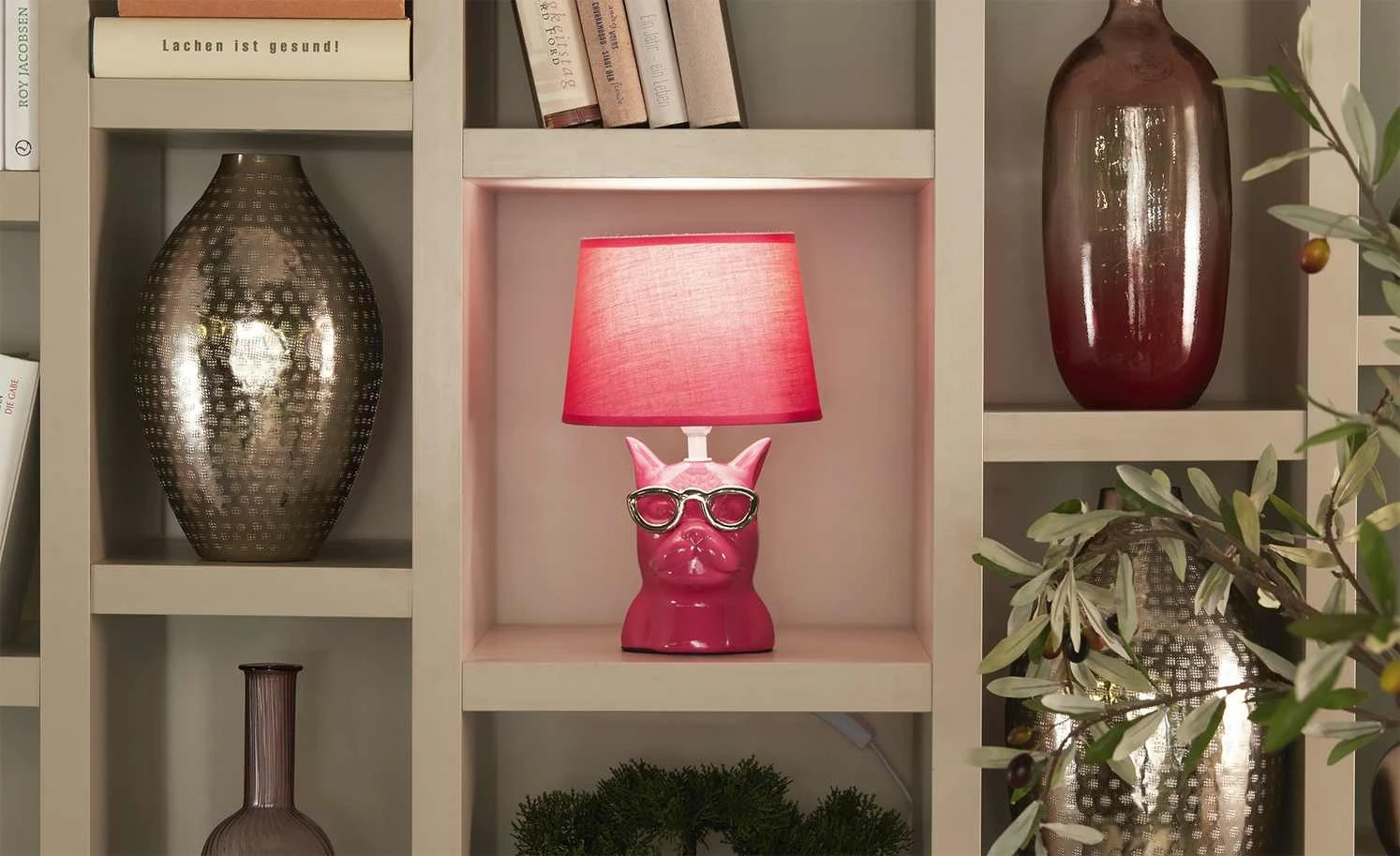 Trio Keramik-Tischleuchte, 1-flammig, Dog pink
