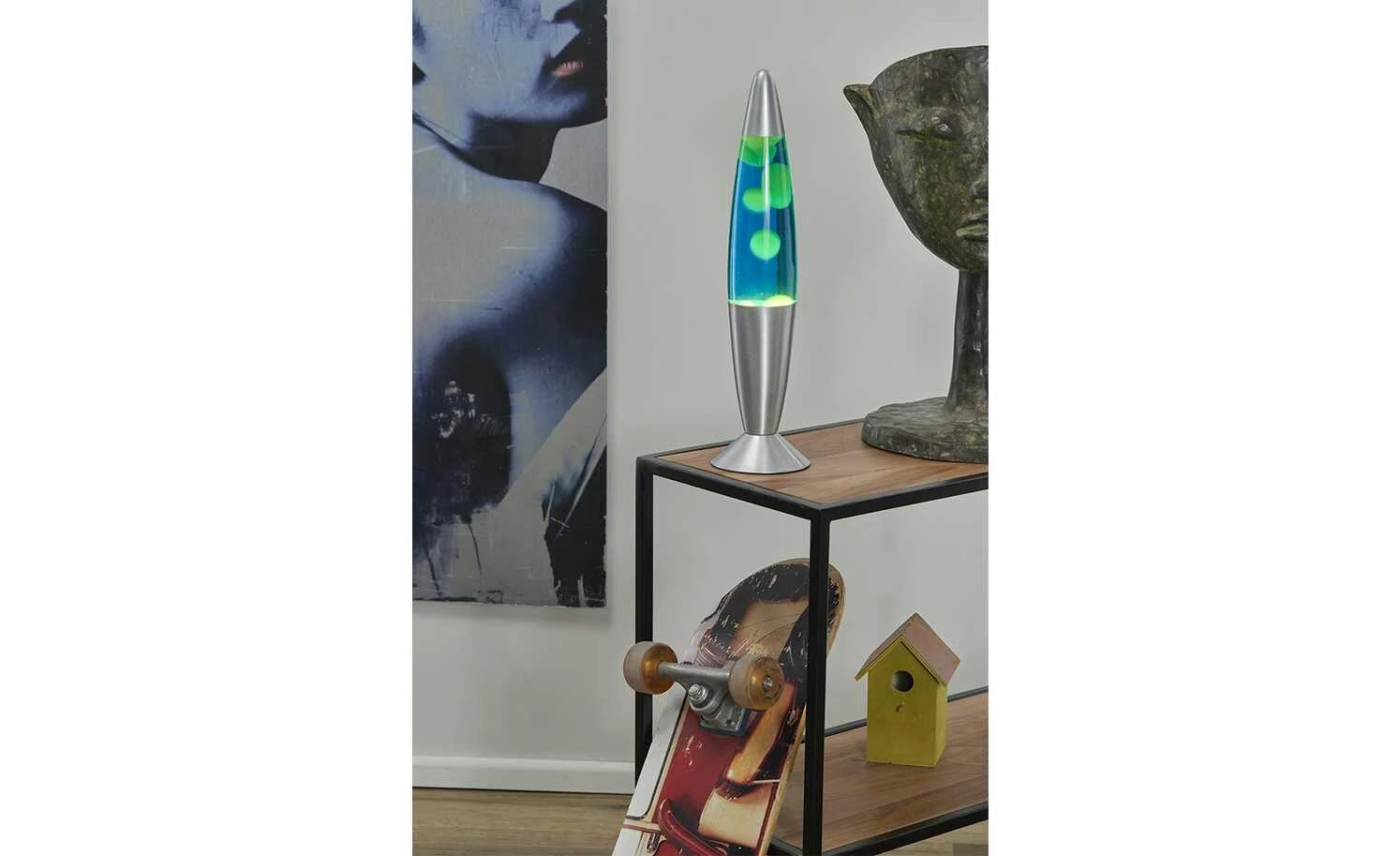 Trio Lava-Leuchte, silber, blau/gelb