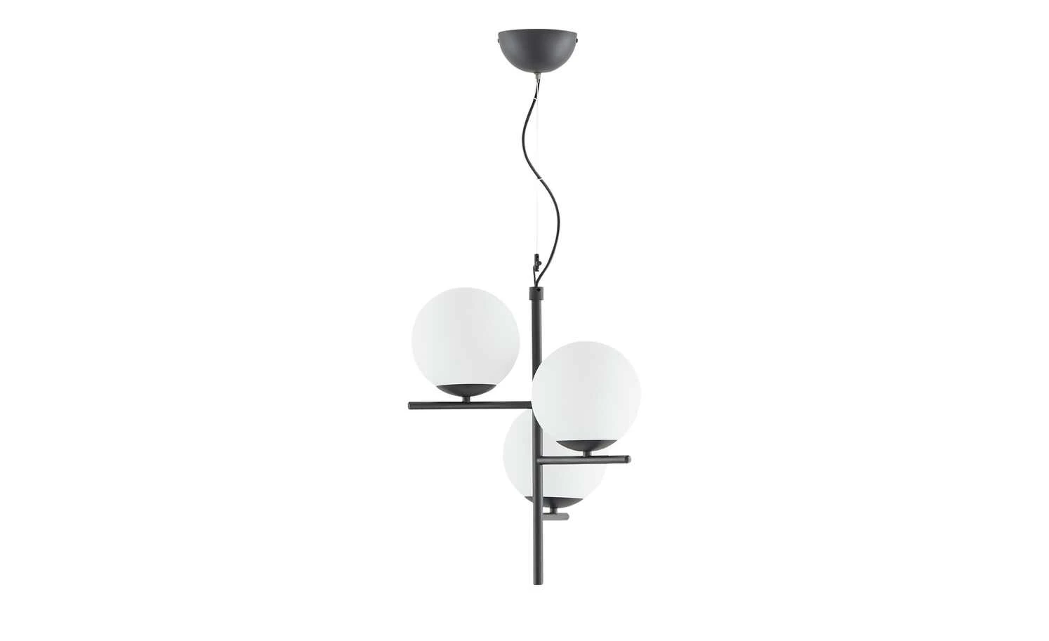 Trio Pendelleuchte, 3-flammig, schwarz, Kugeln weiß