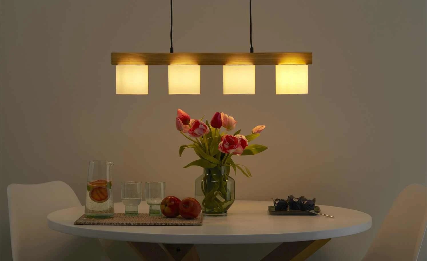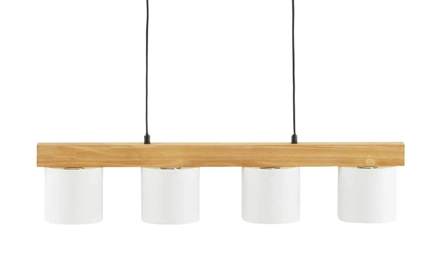 Trio Pendelleuchte, 4-flammig, Holz/ Stoffschirm weiß