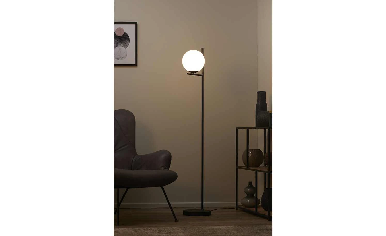 Trio Stehleuchte, 1-flammig, schwarz mit Glaskugel