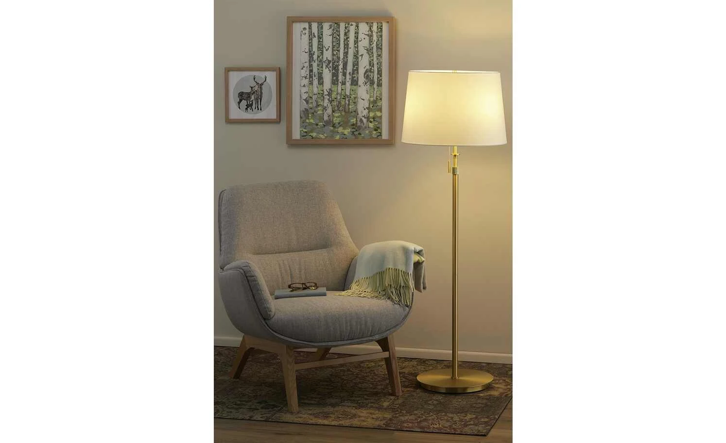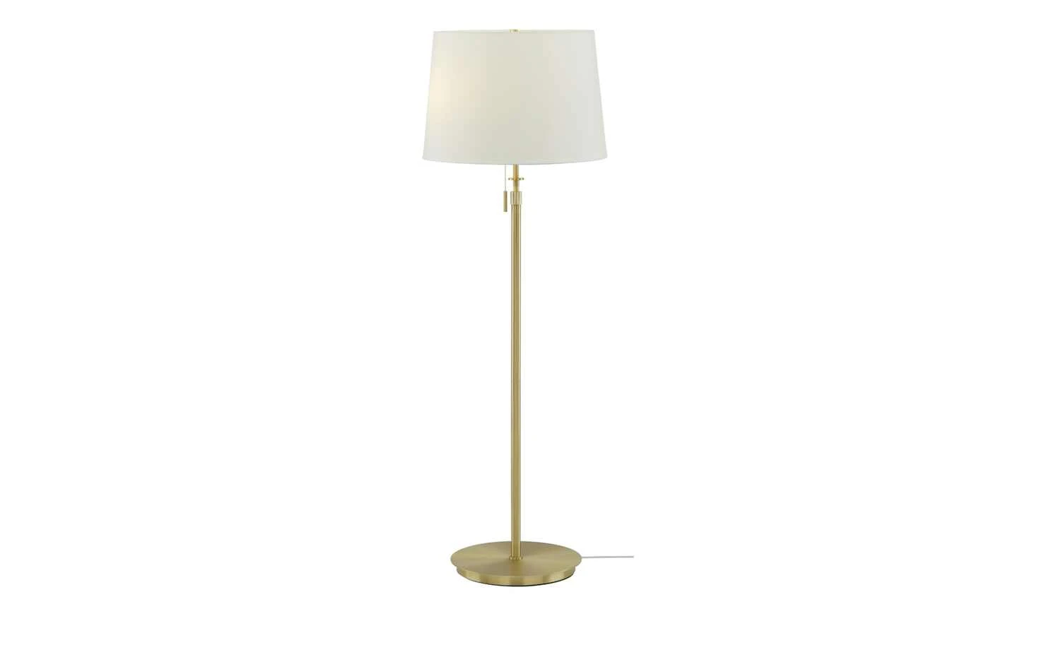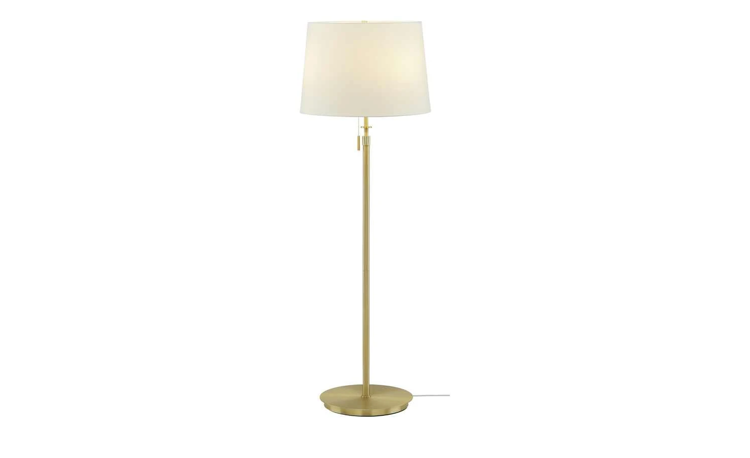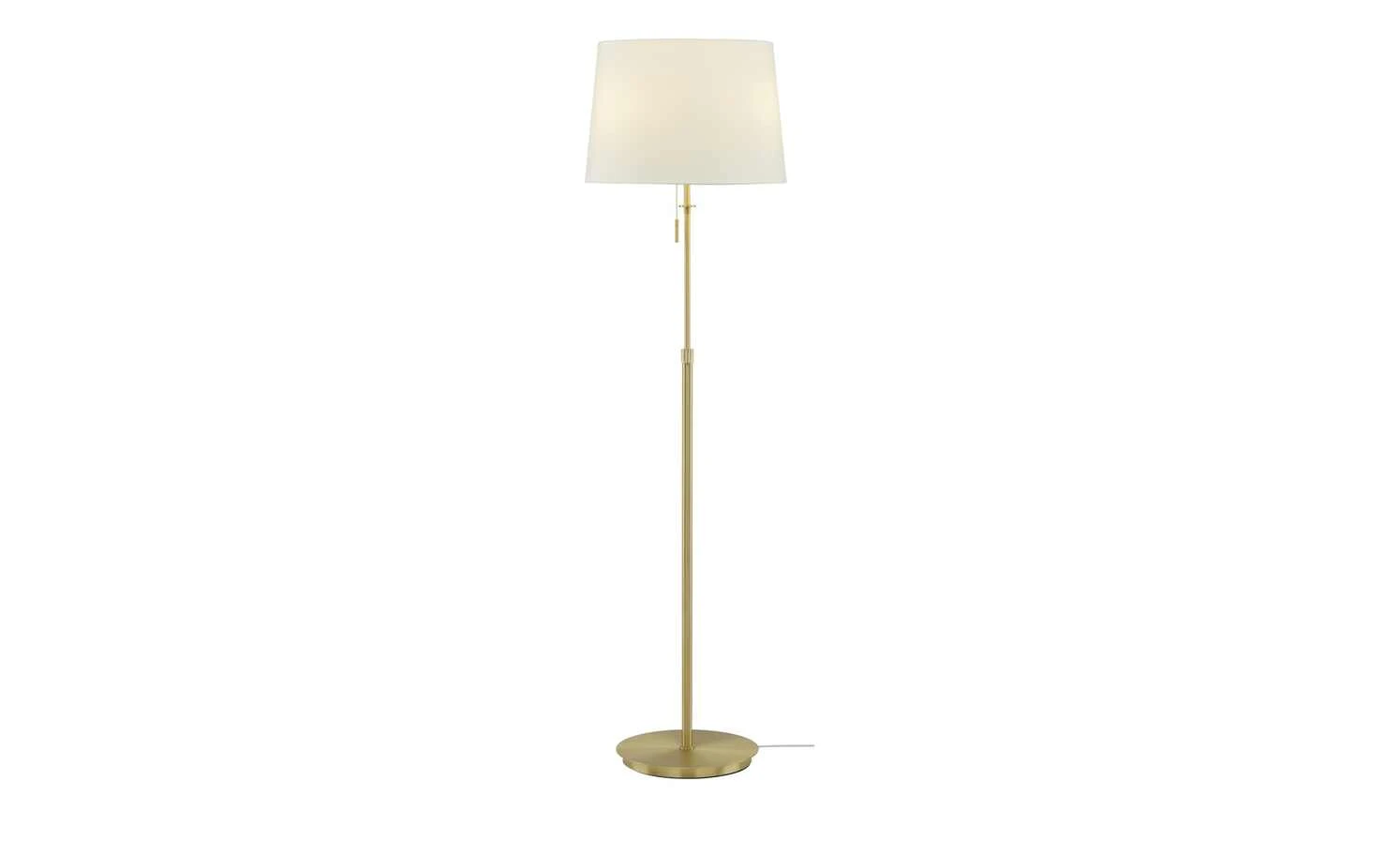 Trio Stehleuchte, 3-flammig, Messing-matt, Stoffschirm weiß