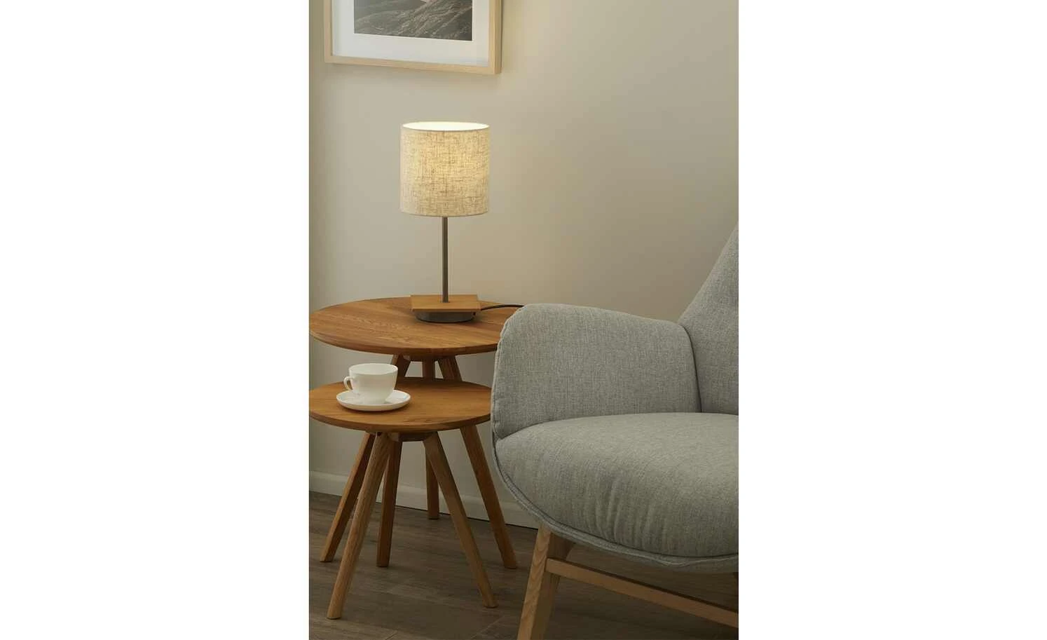 Trio Tischleuchte, 1-flammig, Nickel-antik/Pinienholz