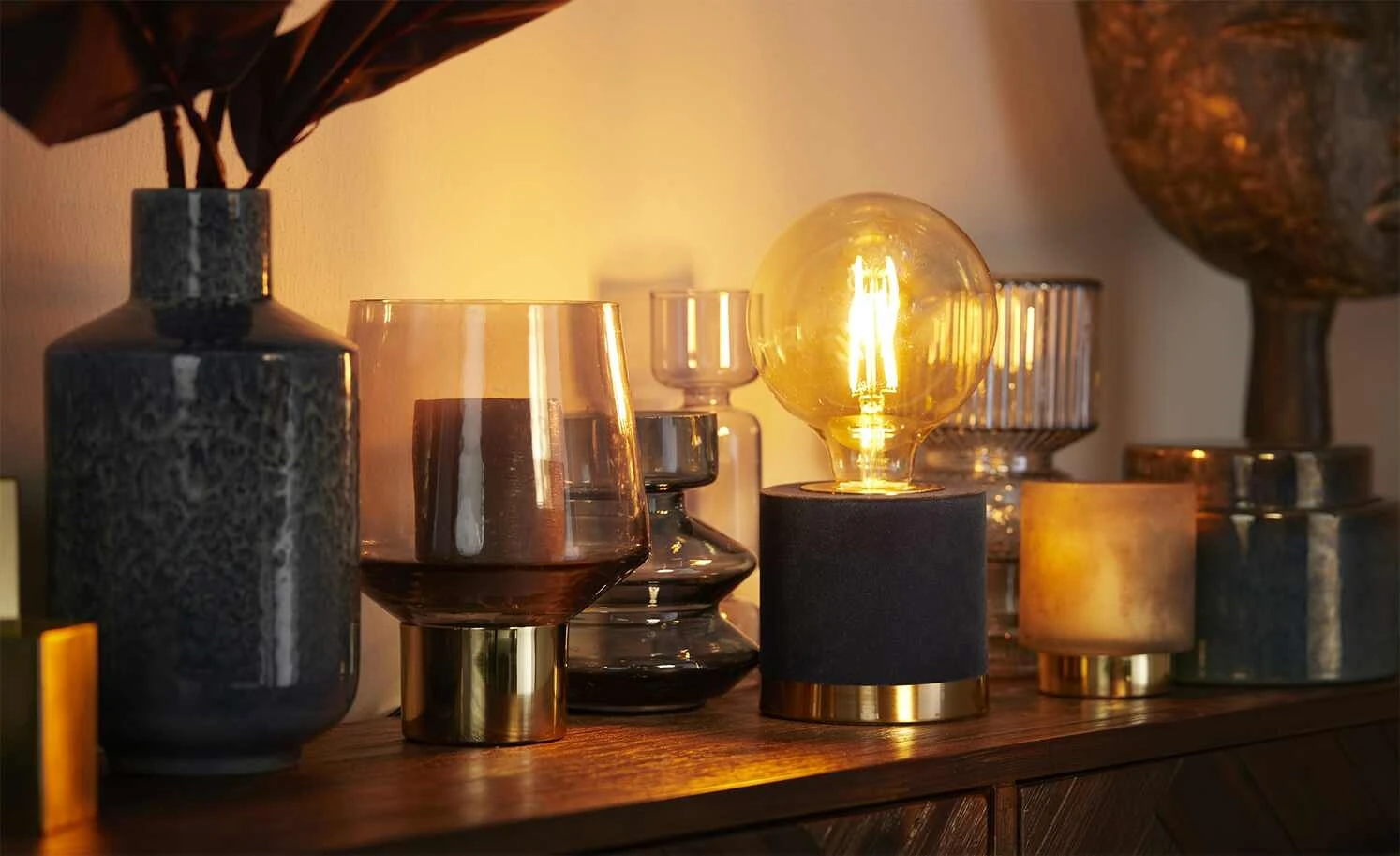 Trio Tischleuchte 1-flammig, Samt blau