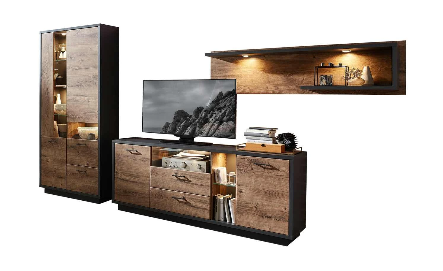 - Lieferumfang / mitgeliefertes Zubehör: 3er LED-Rückwandbeleuchtung ca. 5,2 cm im Set mit Trafo, Handschalter und Zuleitung für Vitrine, 2x 2er LED-Rückwandbeleuchtung ca. 5,2 cm im Set mit Trafo, Handschalter und Zuleitung für TV-Element und Wandboard
